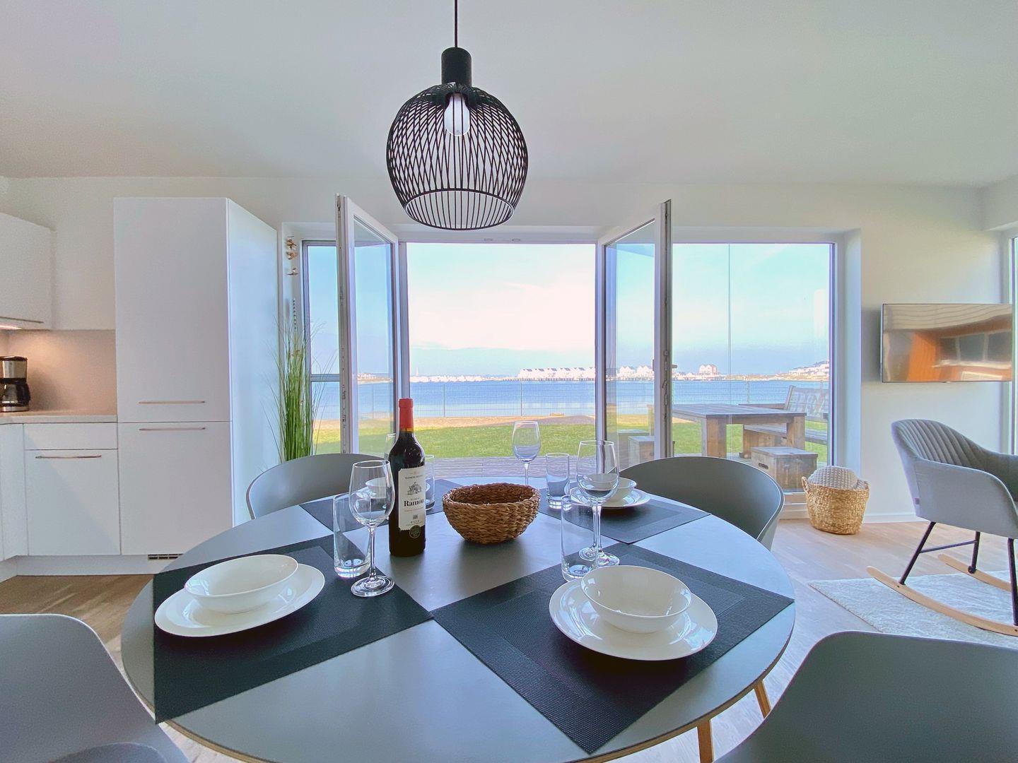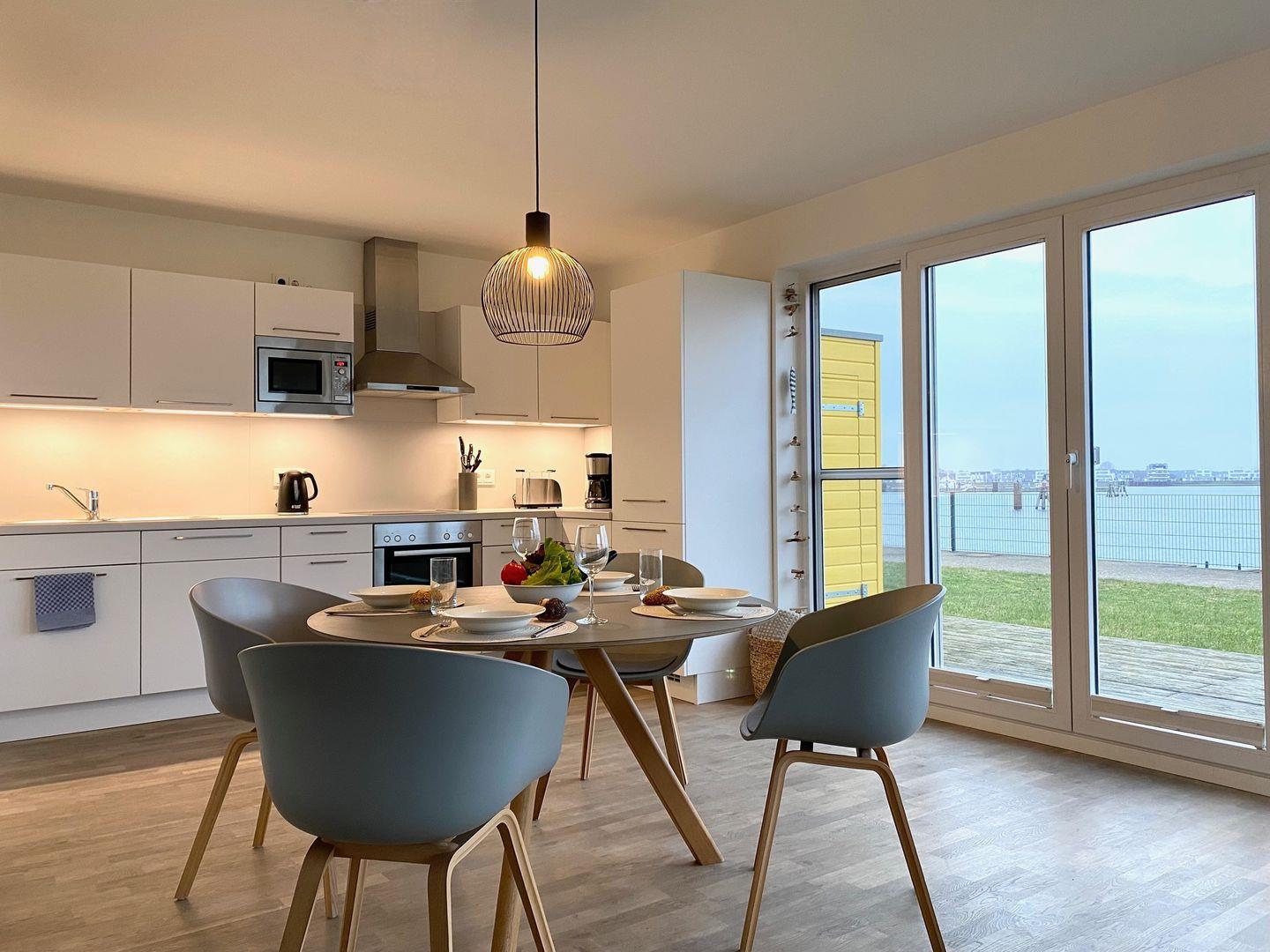 In der voll ausgestatteten Küche kannst Du nach Lust und Laune kulinarische Meisterwerke zaubern und die köstlichen Mahlzeiten anschließend entweder am Esstisch oder auf der malerischen Sonnenterrasse genießen, die Dir einen atemberaubenden Blick auf das Meer bietet.