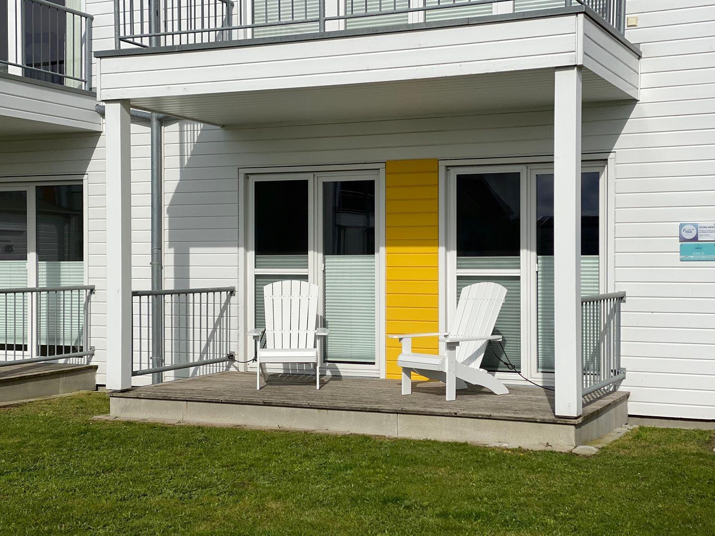 Die Terrasse lädt Dich zu gemütlichen Sommerabenden unter freiem Himmel ein, wo Du die frische Ostseeluft und den Meerblick in vollen Zügen genießen kannst. Tagsüber bietet sich dieser Ort auch perfekt für entspannte Lesestunden an.