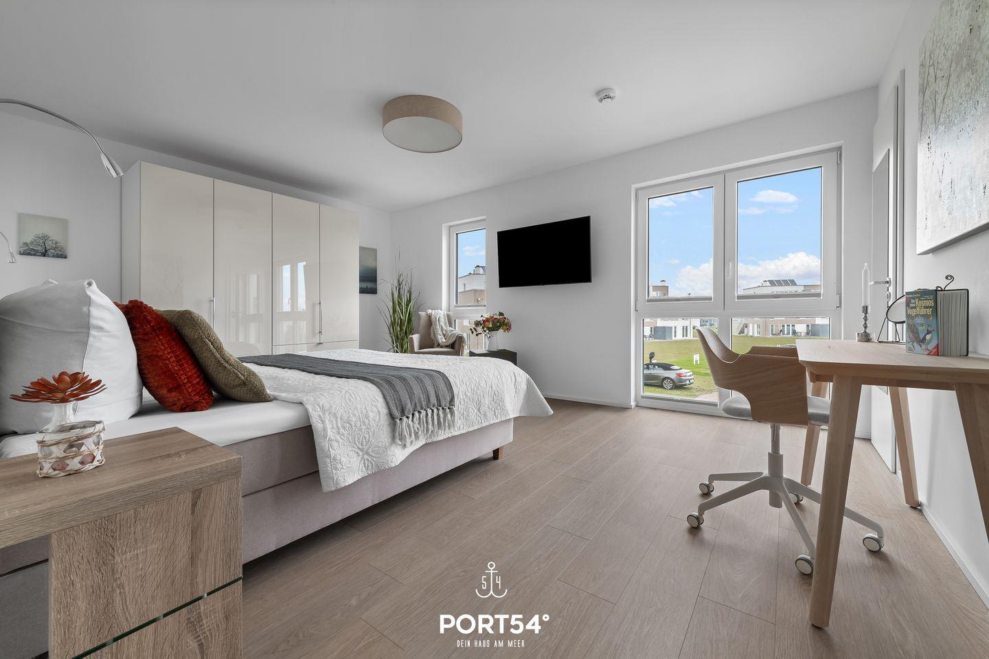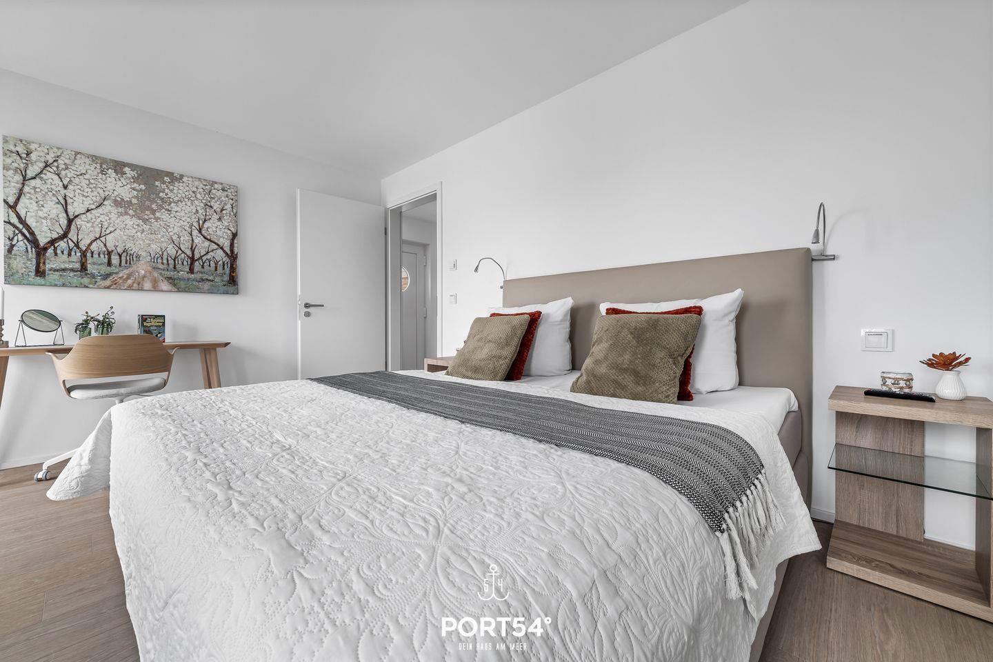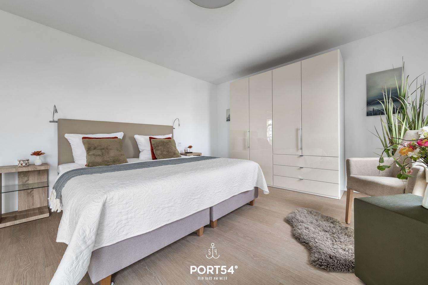 Die Wohnung bietet drei Schlafzimmer. Das eine Zimmer hat ein komfortables Doppelbett und einen Flatscreen-TV. In dem anderen Schlafzimmer stehen Dir zwei bequeme Einzelbetten zur Verfügung und das dritte Schlafzimmer bietet Dir ein Etagenbett für zwei Personen.