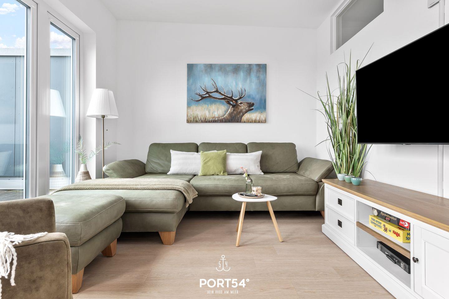 Das Wohnzimmer verfügt über ein Sofa und einen Flatscreen-TV. Hier kannst Du es Dir gemütlich machen und Deine Seele baumeln lassen. Der Kamin sorgt für eine gemütliche Atmosphäre und eine wohlige Wärme.