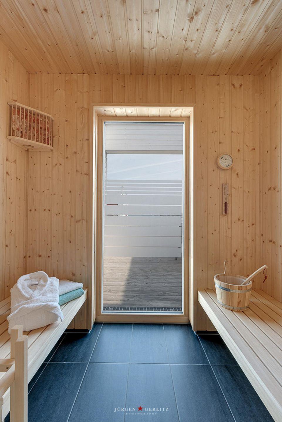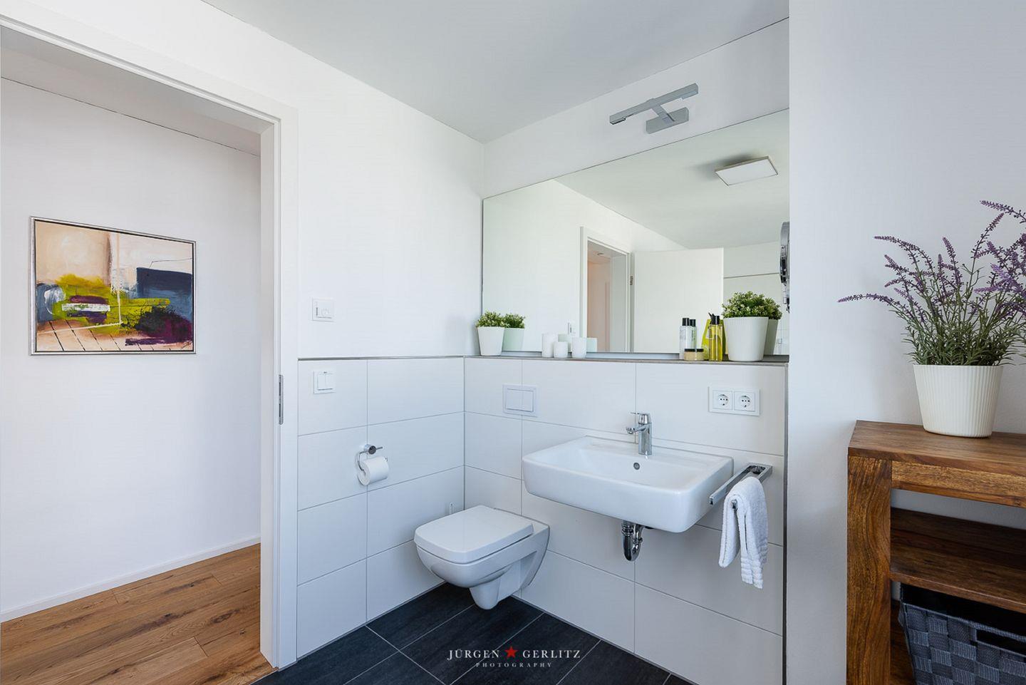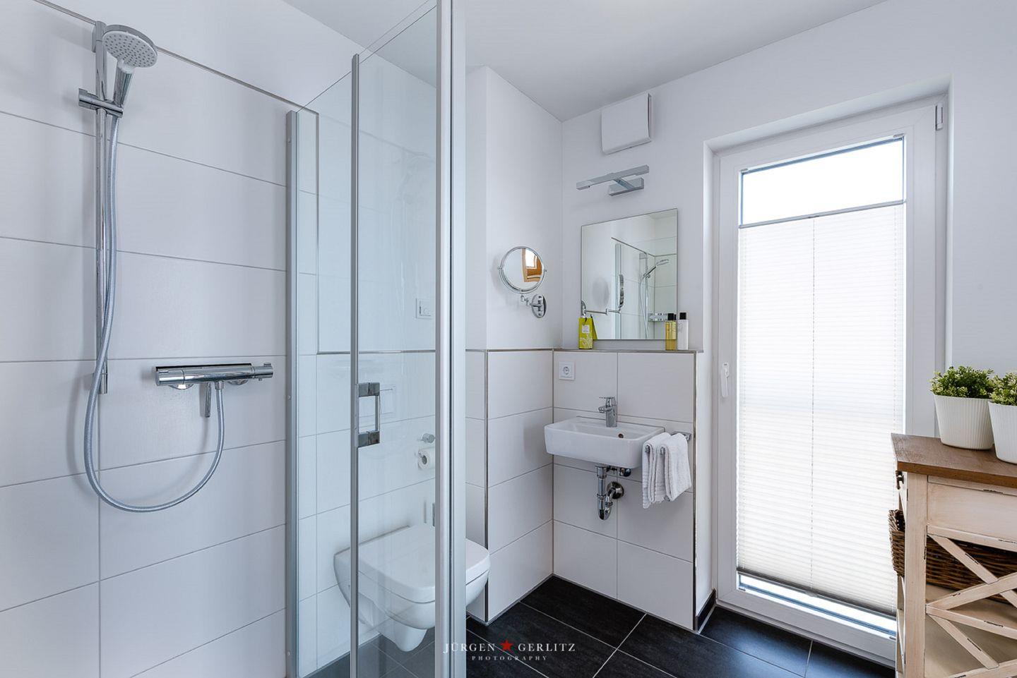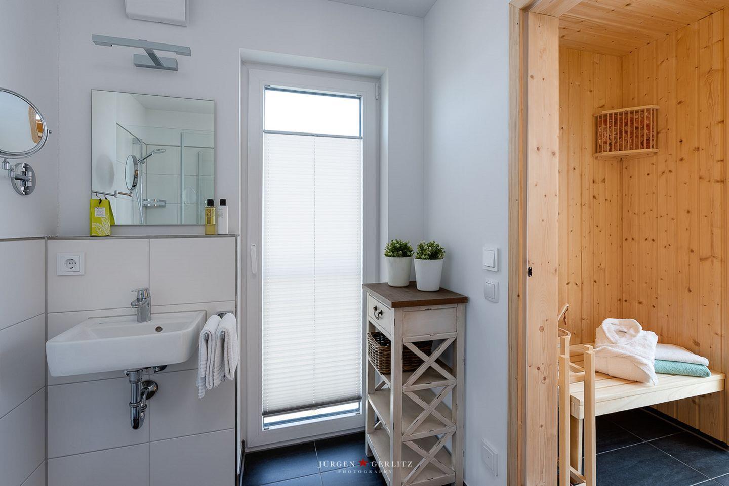 „Nordlicht“ verfügt über ein Gäste-WC im Erdgeschoss, ein Badezimmer mit Whirlwanne und Balkon im 1. Obergeschoss sowie ein großzügiges Badezimmer mit ebenerdiger Dusche im 2. Obergeschoss und angeschlossener finnischer Sauna. Hier kannst Du nach langen Strandspaziergängen herrlich entspannen und die Seele baumeln lassen.