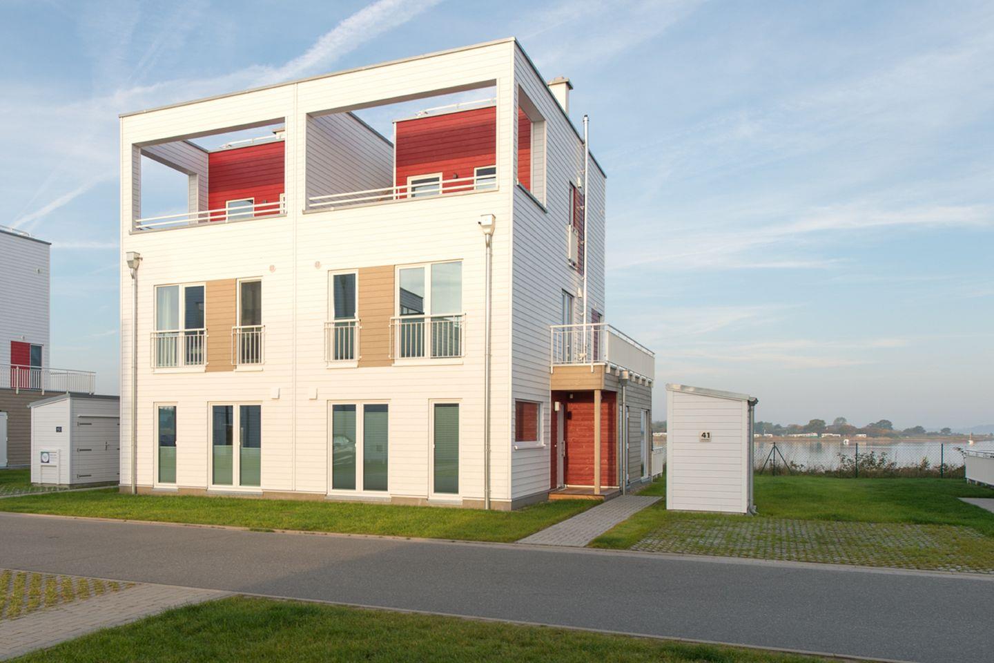 Das Ferienhaus "Nordlicht" bietet zwei Badezimmer, ein Gäste-WC, einen offenen Wohn- und Essbereich, sowie Terrassen mit Wasserblick auf jeder Ebene. Die zwei Schlafzimmer mit Doppelbetten ausgestattet. Highlight sind die finnische Sauna und eine Whirlwanne. Es gibt zwei Stellplätze und einen abschließbaren Fahrradschuppen. Bitte beachte, dass es zu Bautätigkeiten in der Nähe der Unterkunft kommt.