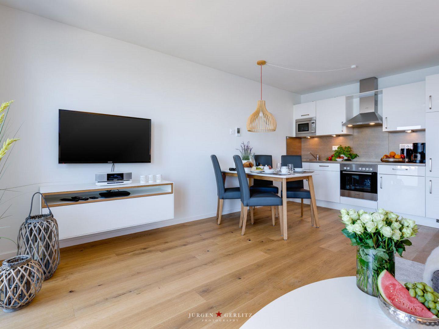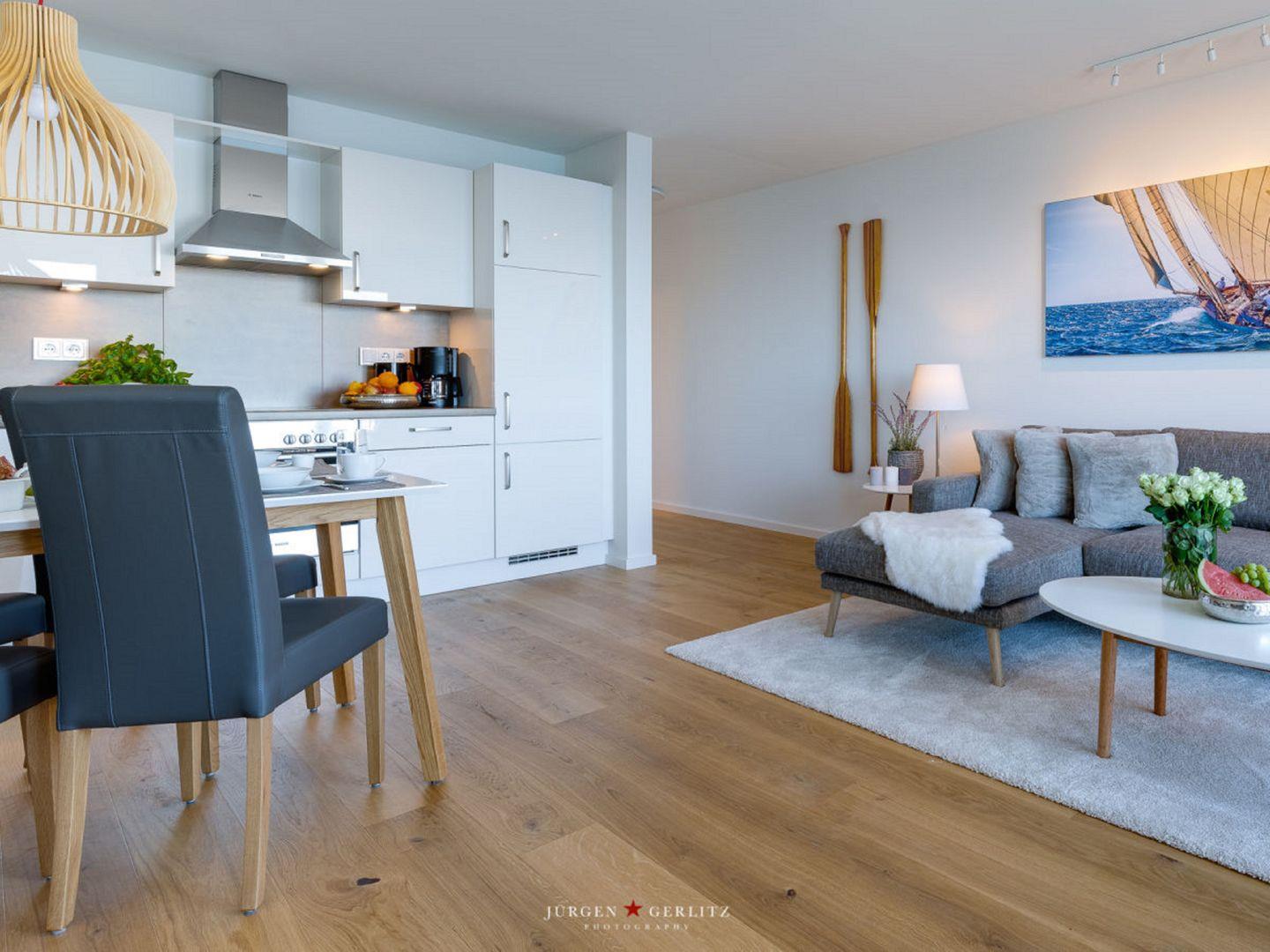 Diese moderne Wohnung hat einiges zu bieten – einen offenen Wohn-/Essbereich, ein kuscheliges Schlafzimmer, ein modernes Badezimmer sowie einen Balkon mit einem Wasserblick, der einfach unvergesslich ist!