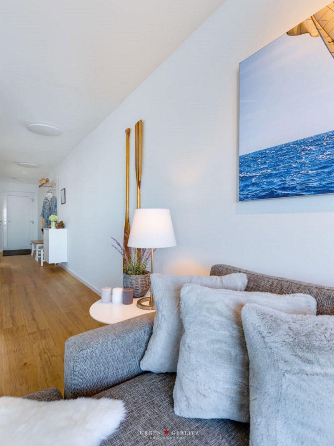 Auf dem Sofa im Wohnbereich kannst Du herrlich relaxen, sei es bei spannenden Abenden vor dem Flachbild-TV oder eingekuschelt mit einem guten Buch.