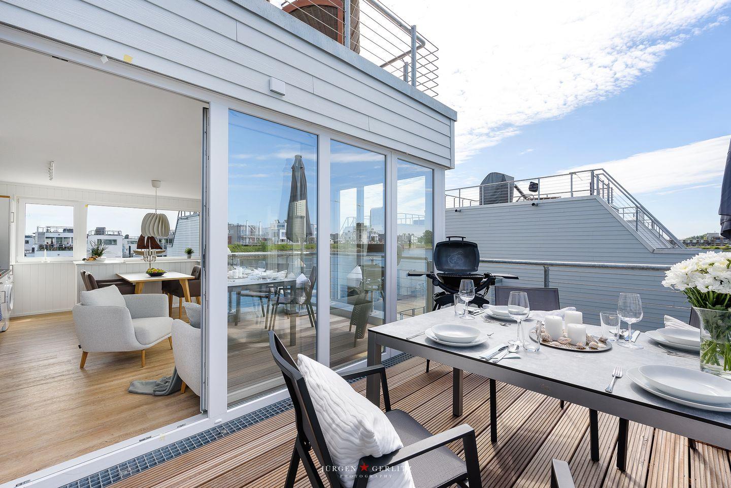 Seeteufel - Hausboot, Dachterrasse, Strandkorb, Wasserblick, Sauna, Dusche
