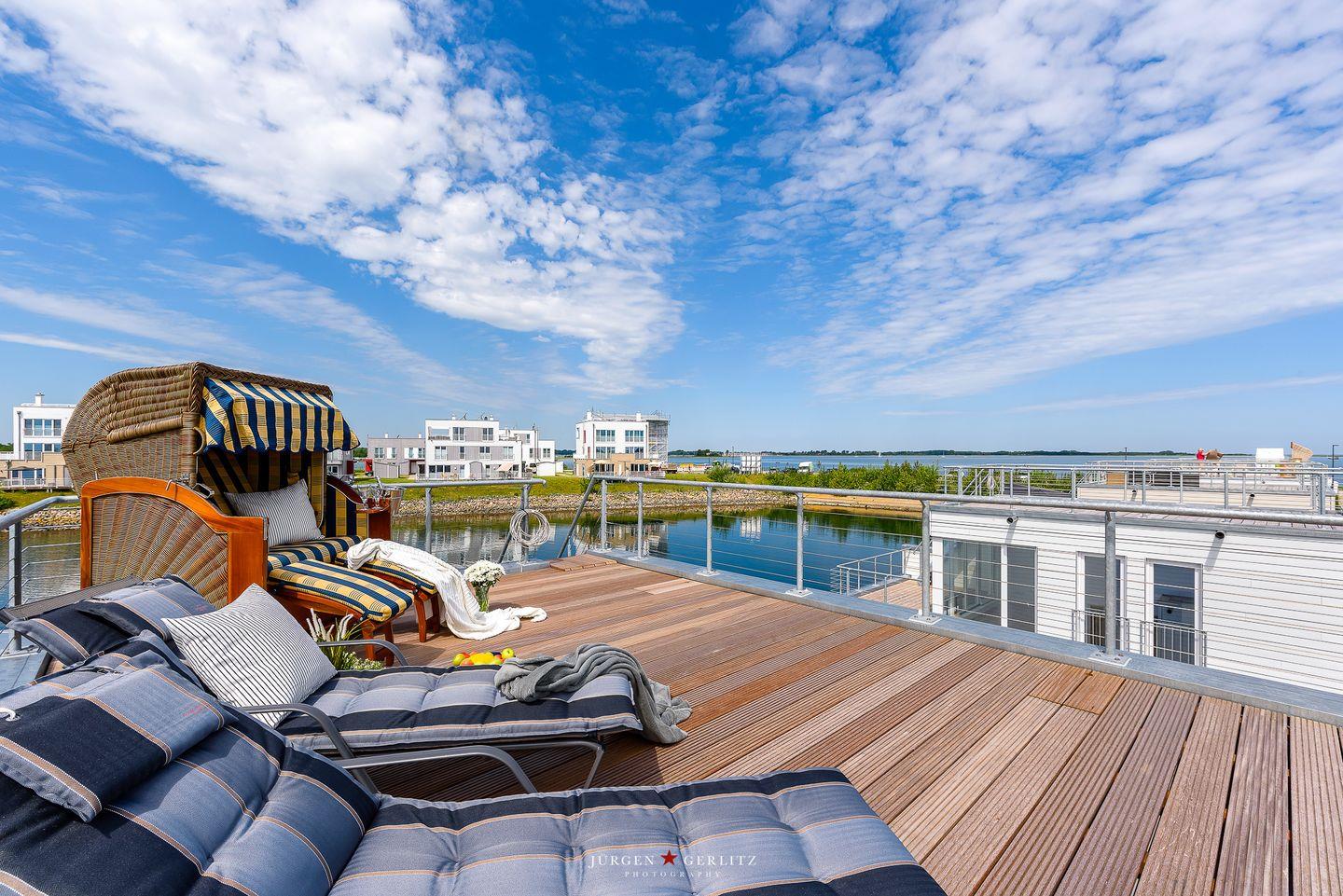 Ein Highlight des Hausbootes ist die großzügige Dachterrasse mit Blick aufs Wasser in alle Himmelsrichtungen. Die Terrasse ist mit Strandkorb und Sonnenliegen ausgestattet und bietet Dir die Möglichkeit, die Sonne zu genießen oder einfach nur die Seeluft zu atmen. Ein Grill steht Dir ebenfalls zur Verfügung.