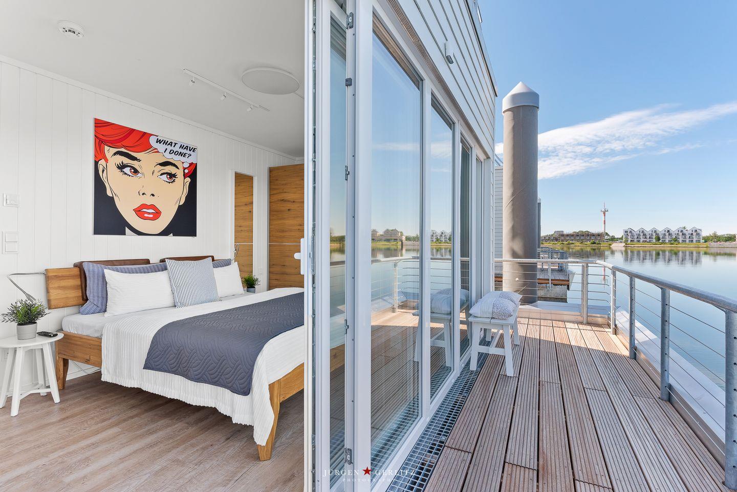 Das Hausboot „Seeteufel“ bietet Dir auf 95 m² zwei Schlafzimmer, einen offenen Wohn- und Essbereich, ein Badezimmer, eine Veranda sowie eine traumhafte Dachterrasse mit Rundum-Wasserblick. Im Wohnzimmer kannst Du es Dir auf dem Sofa gemütlich machen und in der vollausgestatteten Küche kochen. Das eine Schlafzimmer bietet Dir ein Doppelbett, das andere zwei Einzelbetten. Das Bad verfügt über eine finnische Sauna sowie eine ebenerdige Dusche. Ein Stellplatz ist vorhanden zur Verfügung.