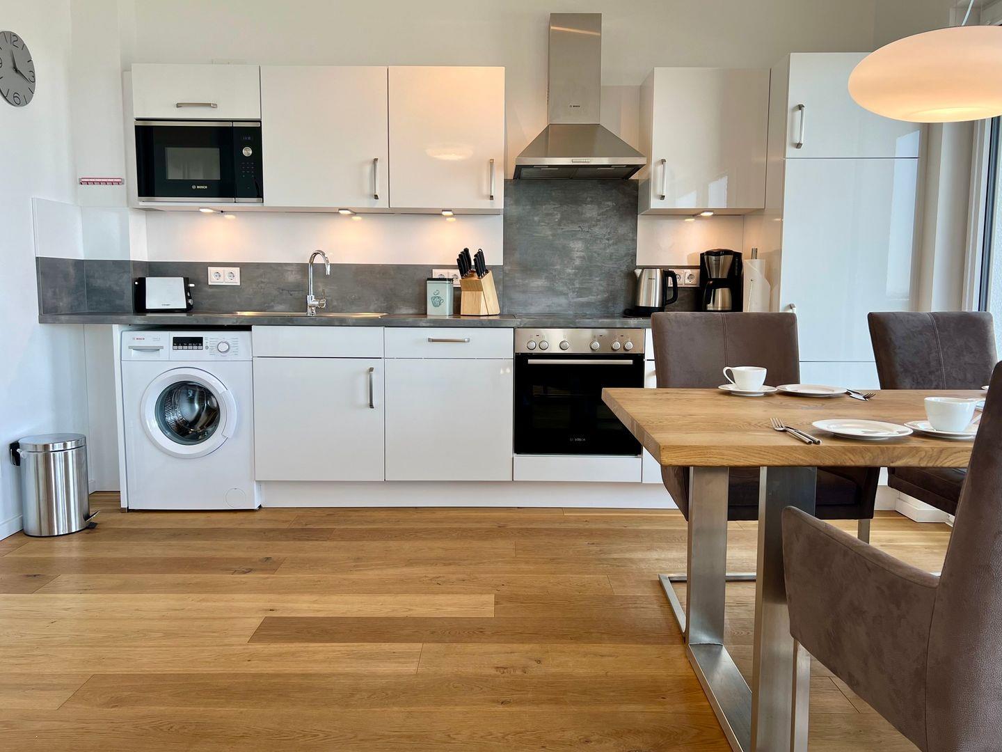 Der offene Wohn- und Essbereich schafft Dir eine einladende Atmosphäre, während die voll ausgestattete Küche keine Wünsche offenlässt.
