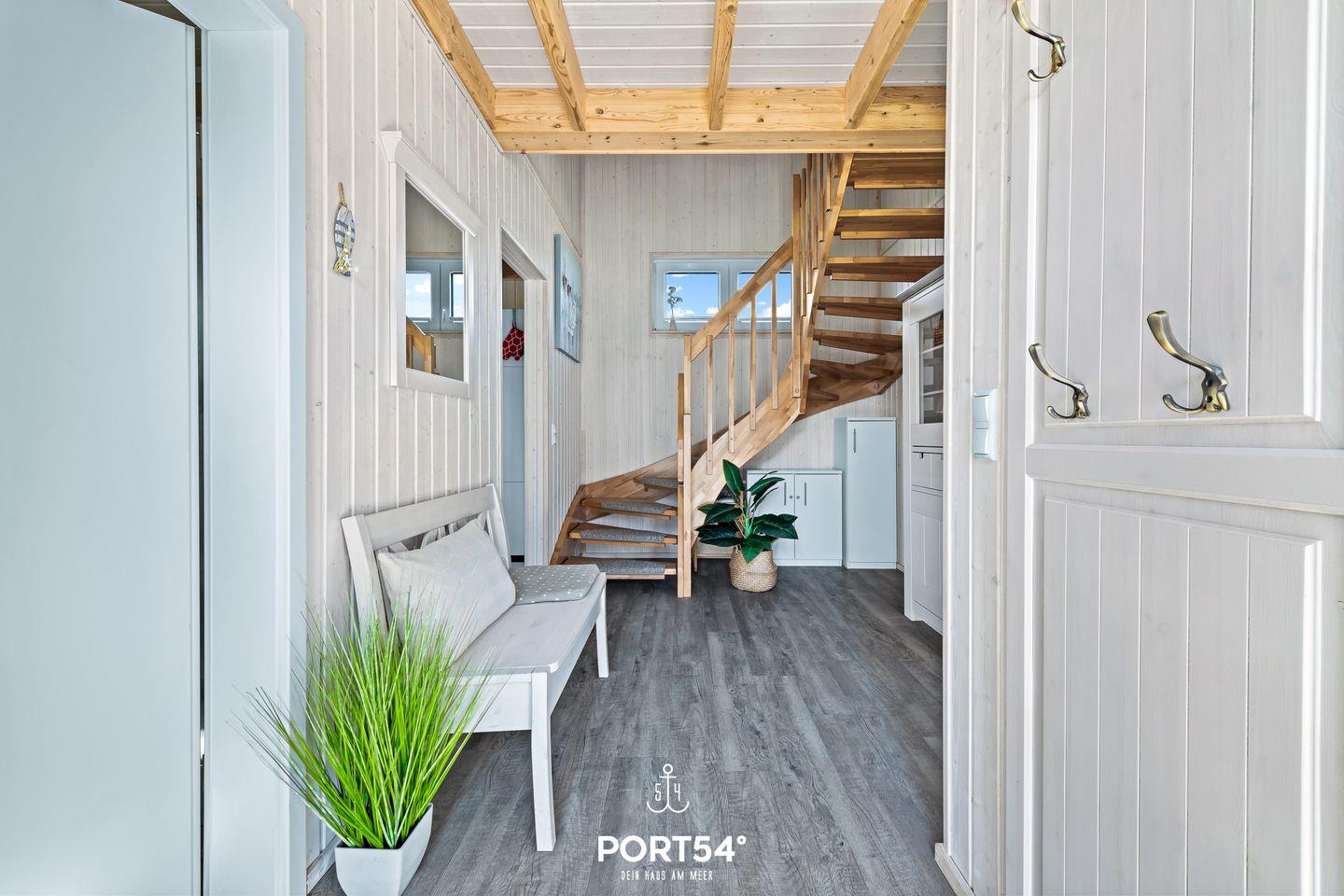 Das Haus verfügt über einen offenen Wohn- und Essbereich, eine Küche, zwei Schlafzimmer sowie zwei Bäder. Es besticht durch seine Lage im Grünen und die unmittelbare Nähe zur Ostsee.