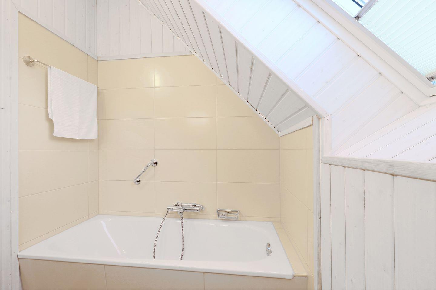 Ein Badezimmer mit Fenster inkl. Sichtschutz befindet sich im Erdgeschoss und ist mit einer Dusche, einer Handtuchheizung und dem Highlight: einer Infrarot-Sauna ausgestattet. Hier kannst Du Dich an kalten Tagen aufwärmen und entspannen. Ein weiteres Badezimmer, ebenfalls mit Fenster inkl. Sichtschutz, befindet sich im Obergeschoss und bietet ebenfalls eine Handtuchheizung und eine Duschwanne.
