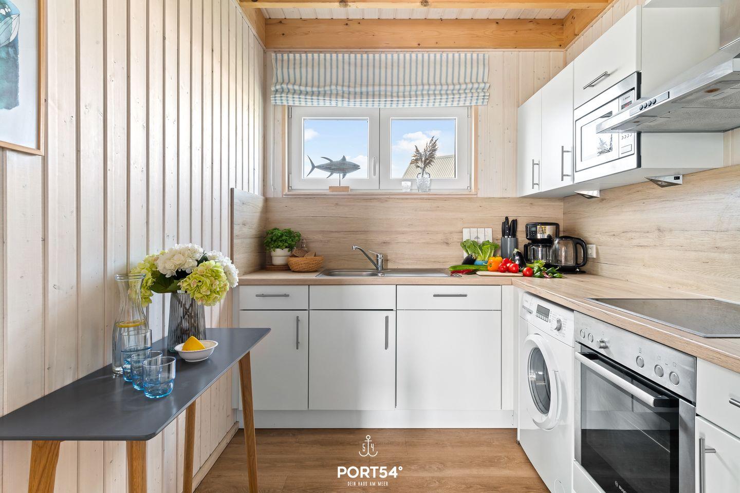 Nach langen Strandspaziergängen kannst Du auf dem gemütlichen Sofa vor dem Kamin entspannen und Deine Lieblingsserie auf dem Flachbild-TV schauen. Das Sofa lässt sich mit wenigen Handgriffen in zwei zusätzliche Schlafmöglichkeiten (140 x 200 cm) umwandeln. Die Küche bietet alles, was Du für einen geselligen Kochabend mit der Familie benötigst.