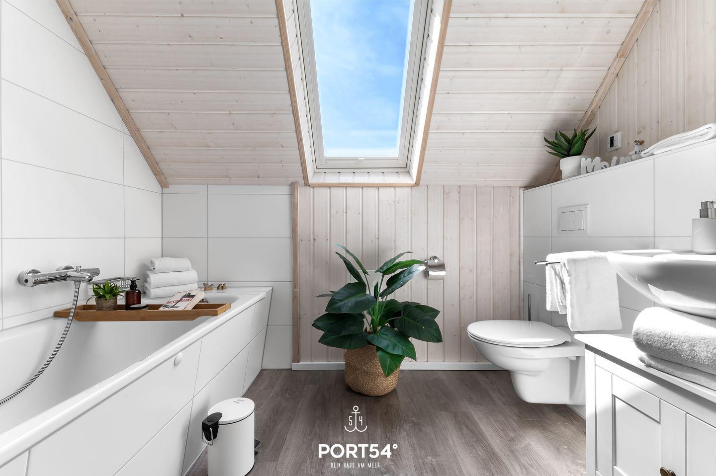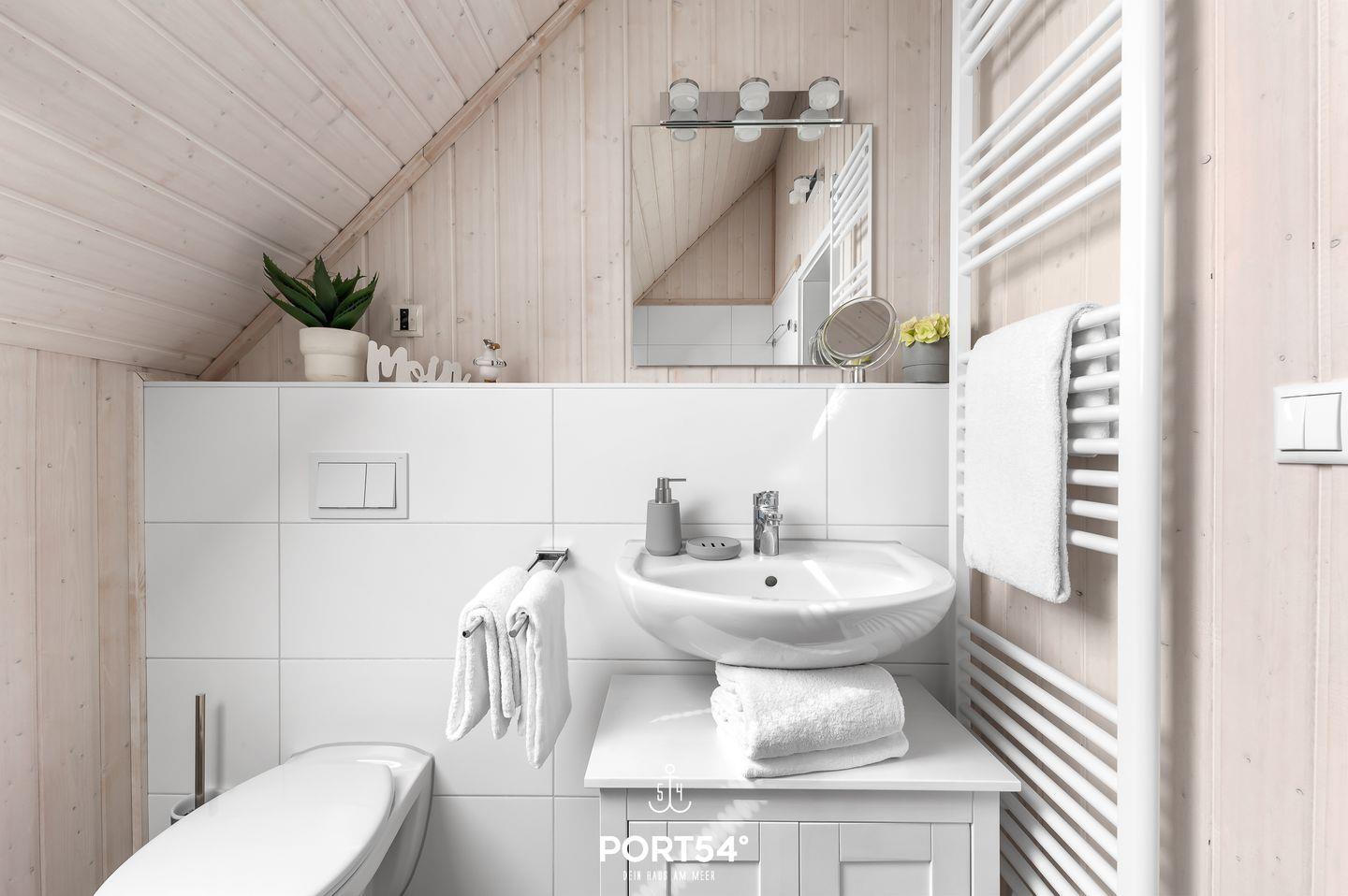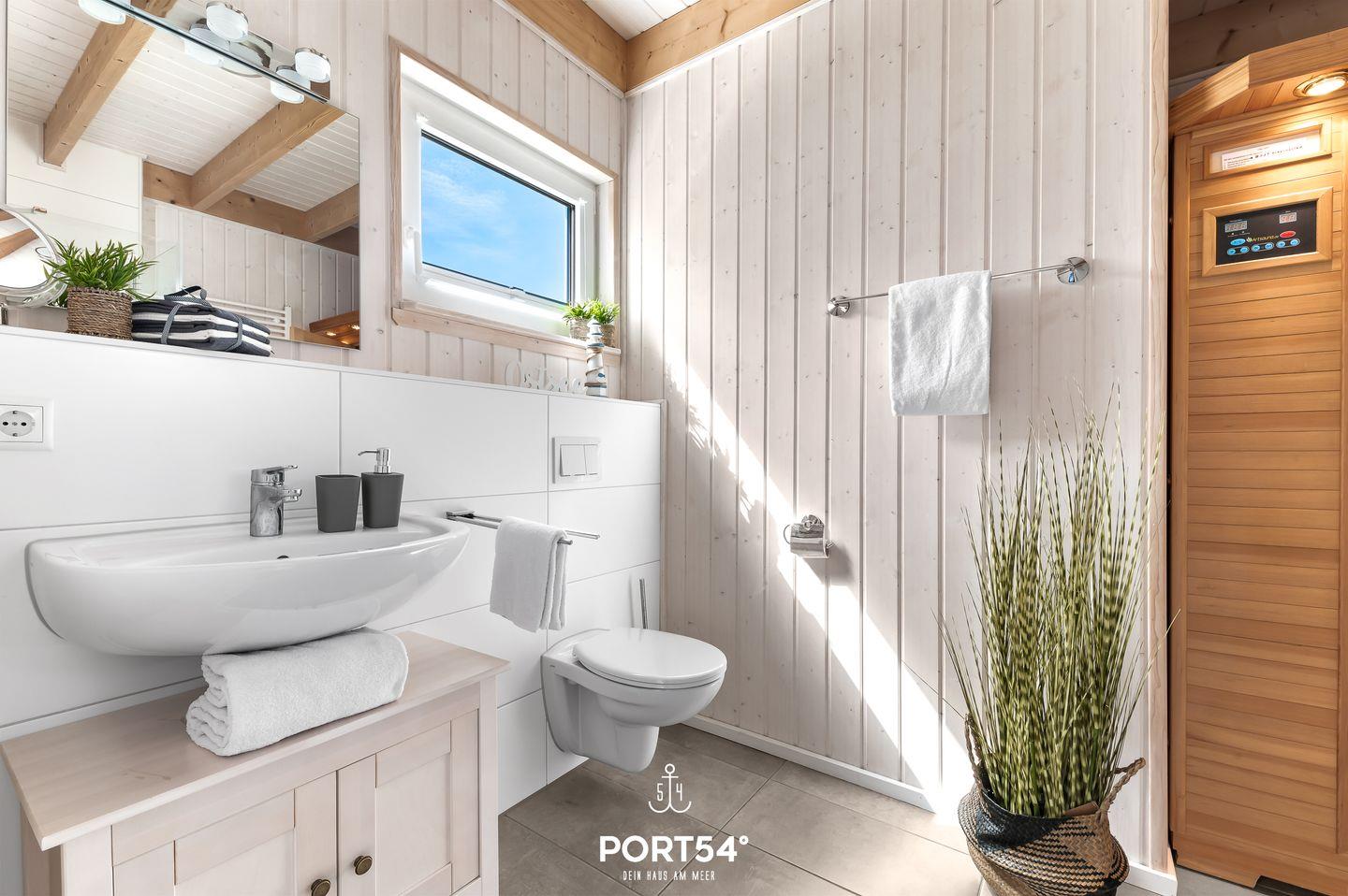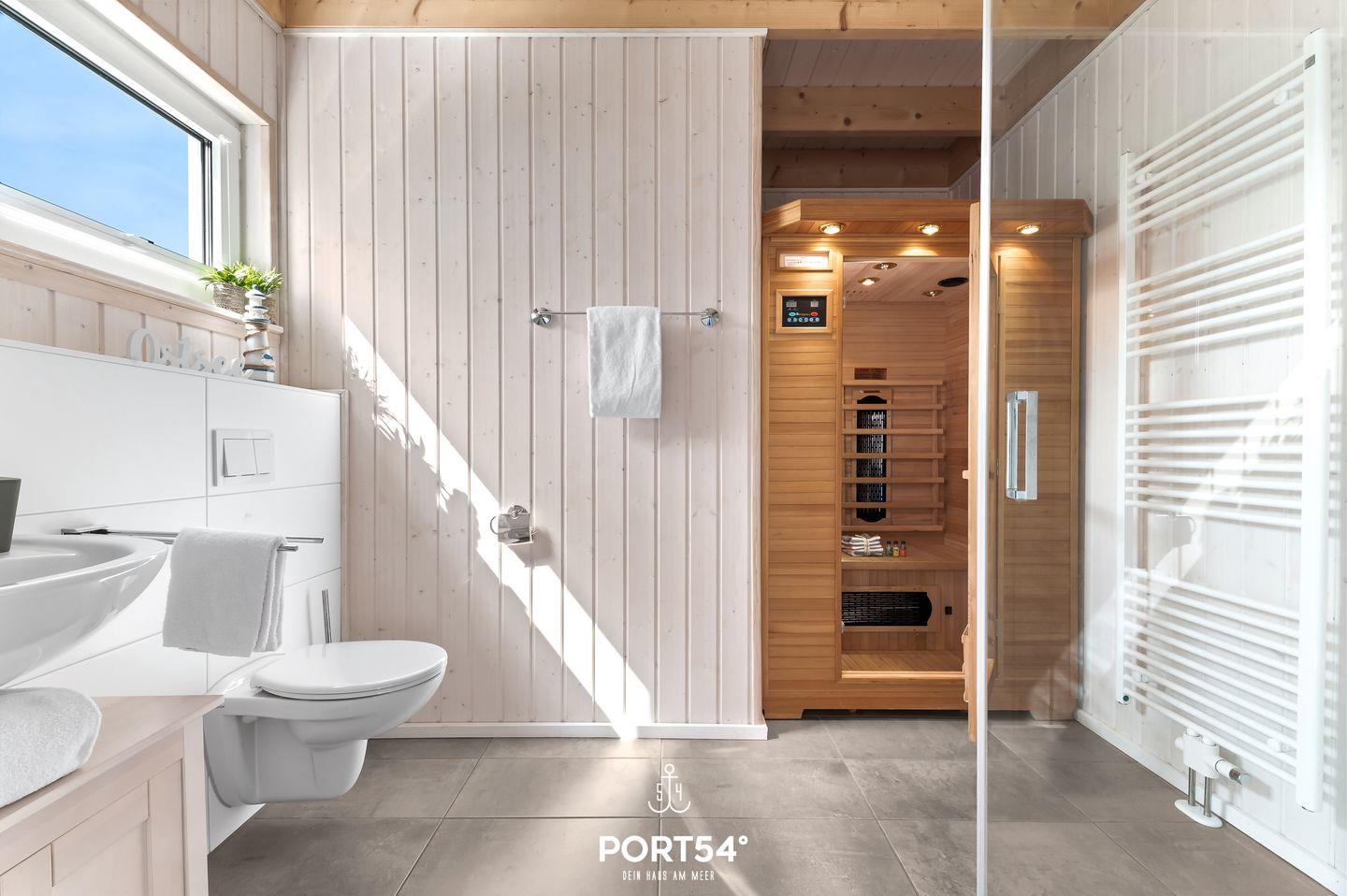 Ein Badezimmer befindet sich im Erdgeschoss und ist mit einer Dusche, einem Kosmetikspiegel, einem Fön und dem Highlight: einer Infrarot-Sauna ausgestattet. Hier kannst Du Dich an kalten Tagen aufwärmen und entspannen! Das andere Badezimmer befindet sich im ersten Obergeschoss und bietet eine Badewanne, ebenfalls einen Kosmetikspiegel sowie einen Föhn.