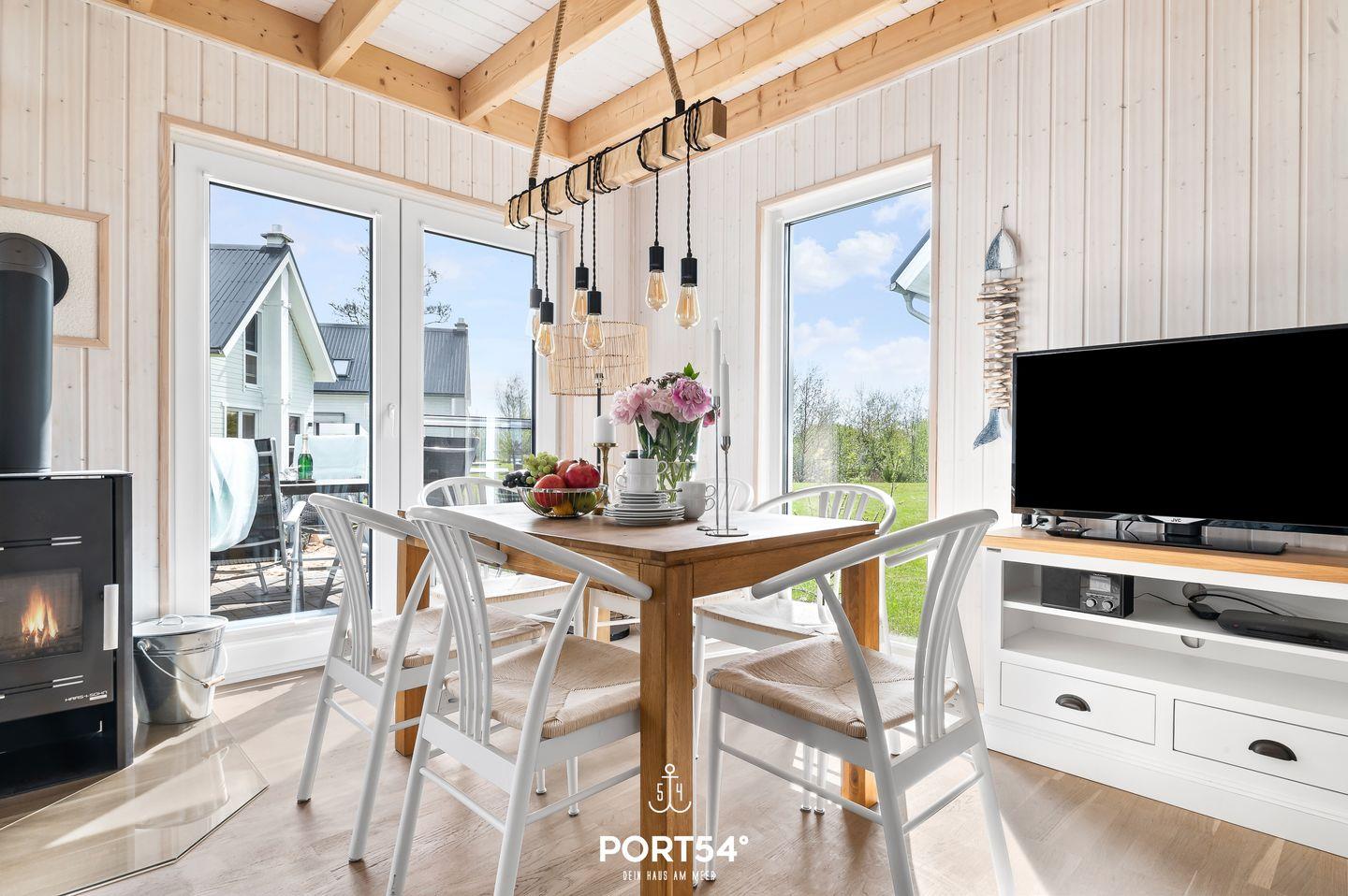 Nach langen Strandspaziergängen kannst Du auf dem gemütlichen Sofa vor dem Kamin entspannen und Deine Lieblingsserie über Magenta-TV auf dem Flachbild-TV schauen oder einen Spielabend veranstalten. Das Sofa kann zu einer Schlafcouch (140 x 200 cm) ausgezogen werden und gewährt so noch weitere Schlafplätze für zwei Kinder. Für die Kleinen stehen Dir ein Kinderhochstuhl, ein Kinderreisebett sowie Kindergeschirr und Besteck bereit. Die Küche bietet alles, was Du für einen geselligen Kochabend mit der Familie benötigst.