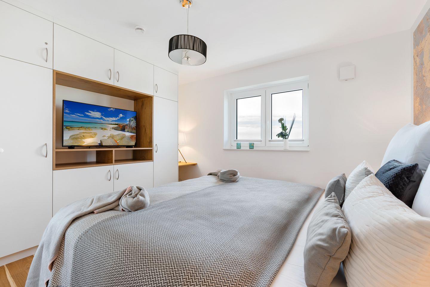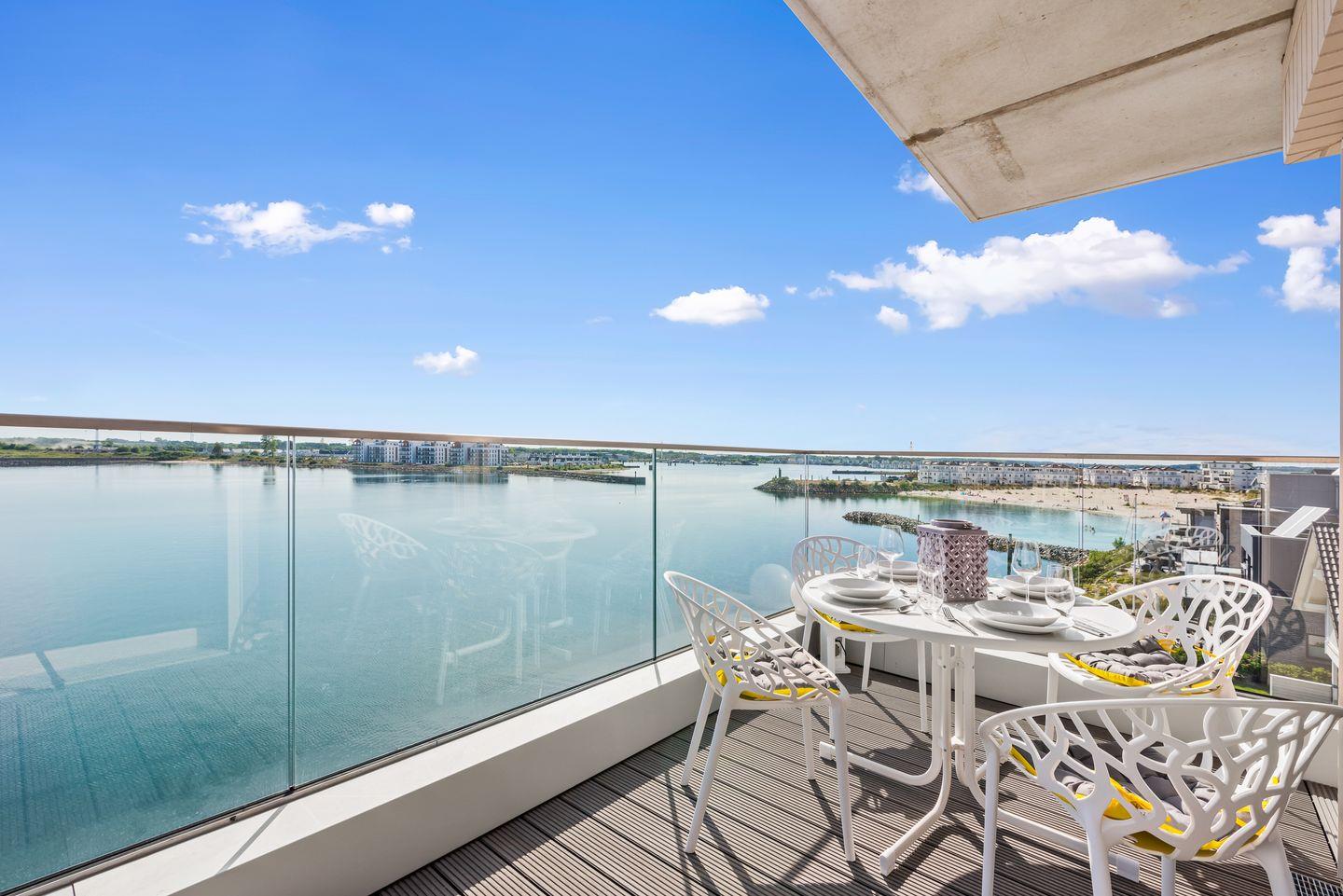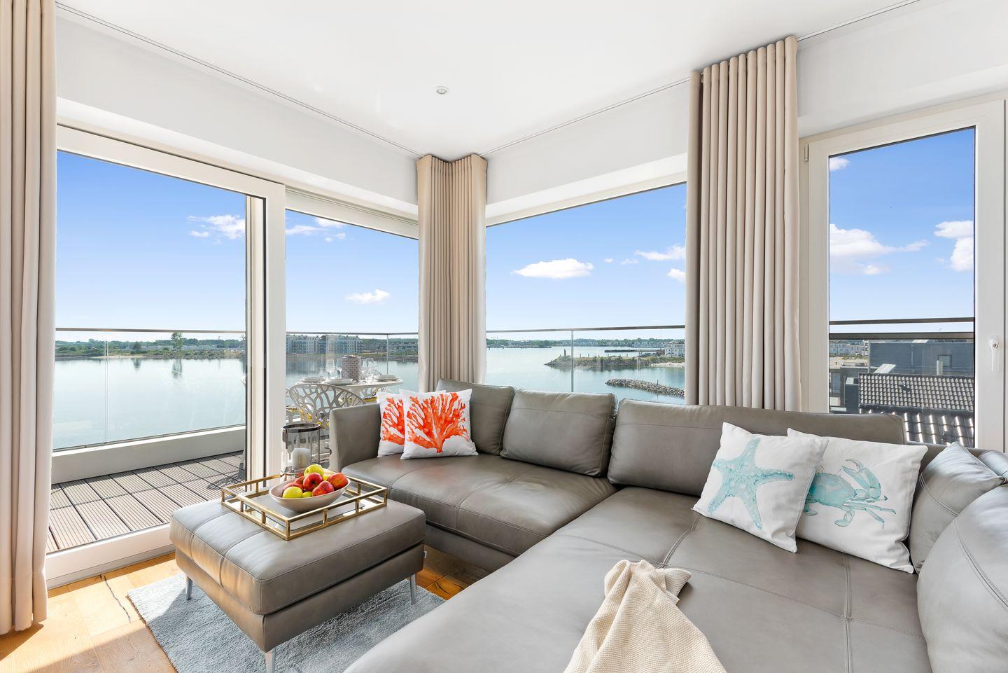 Willkommen im Penthouse "Himmel & Meer" einem Luxusapartment mit Weitblick direkt am Wasser. Das exklusive Penthouse "Himmel & Meer" im Ostseeresort Olpenitz verwöhnt Sie mit einer Kombination aus stilvollem Design und einmaliger Lage. Auf 75 qm bietet diese Penthousewohnung Platz für bis zu 3 Personen und garantiert durch einen privaten Fahrstuhl einen barrierefreien Zugang. Der einzigartige Parkettboden und die sorgfältige Auswahl an hochwertigen Möbeln schaffen eine Atmosphäre der Extraklasse.
