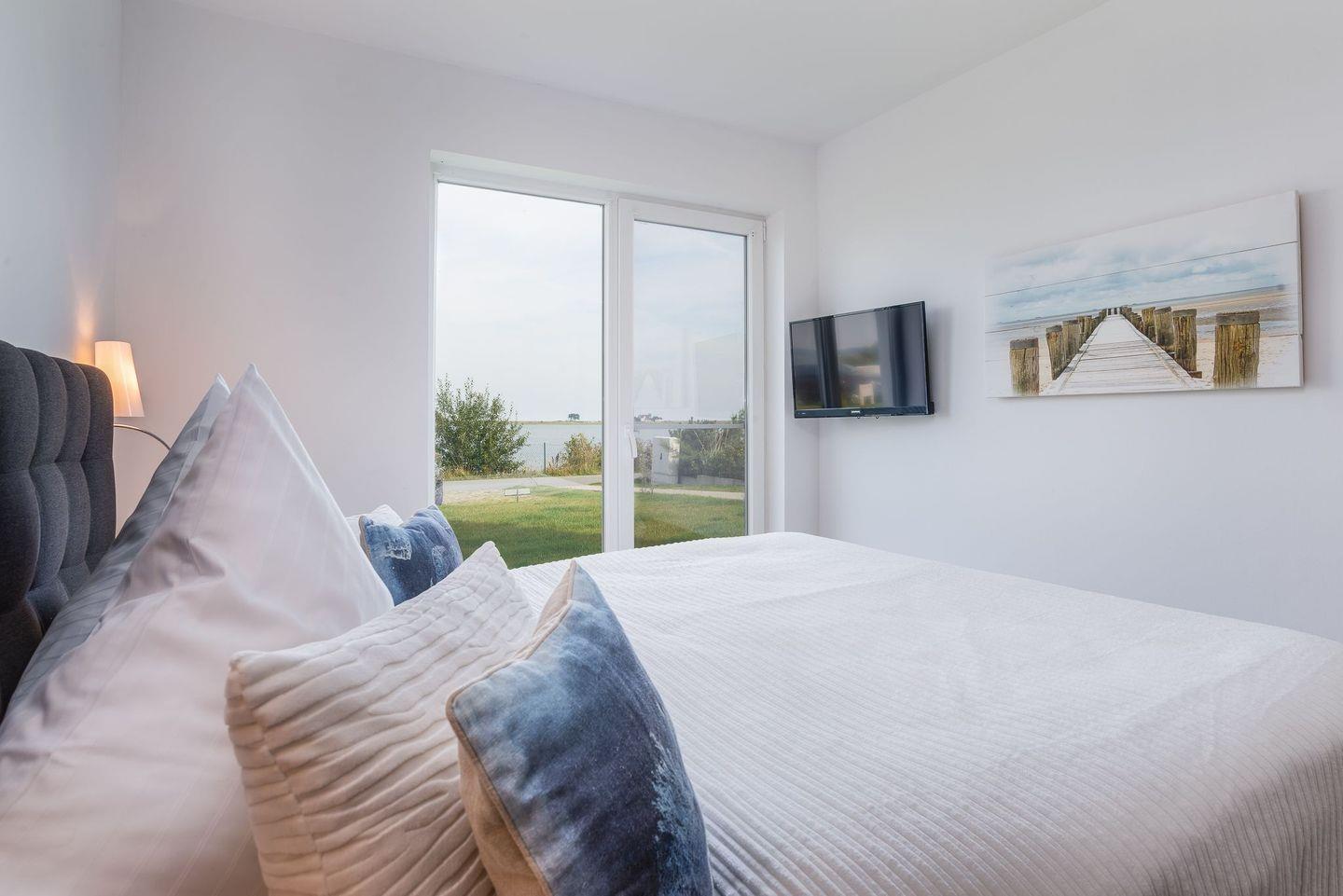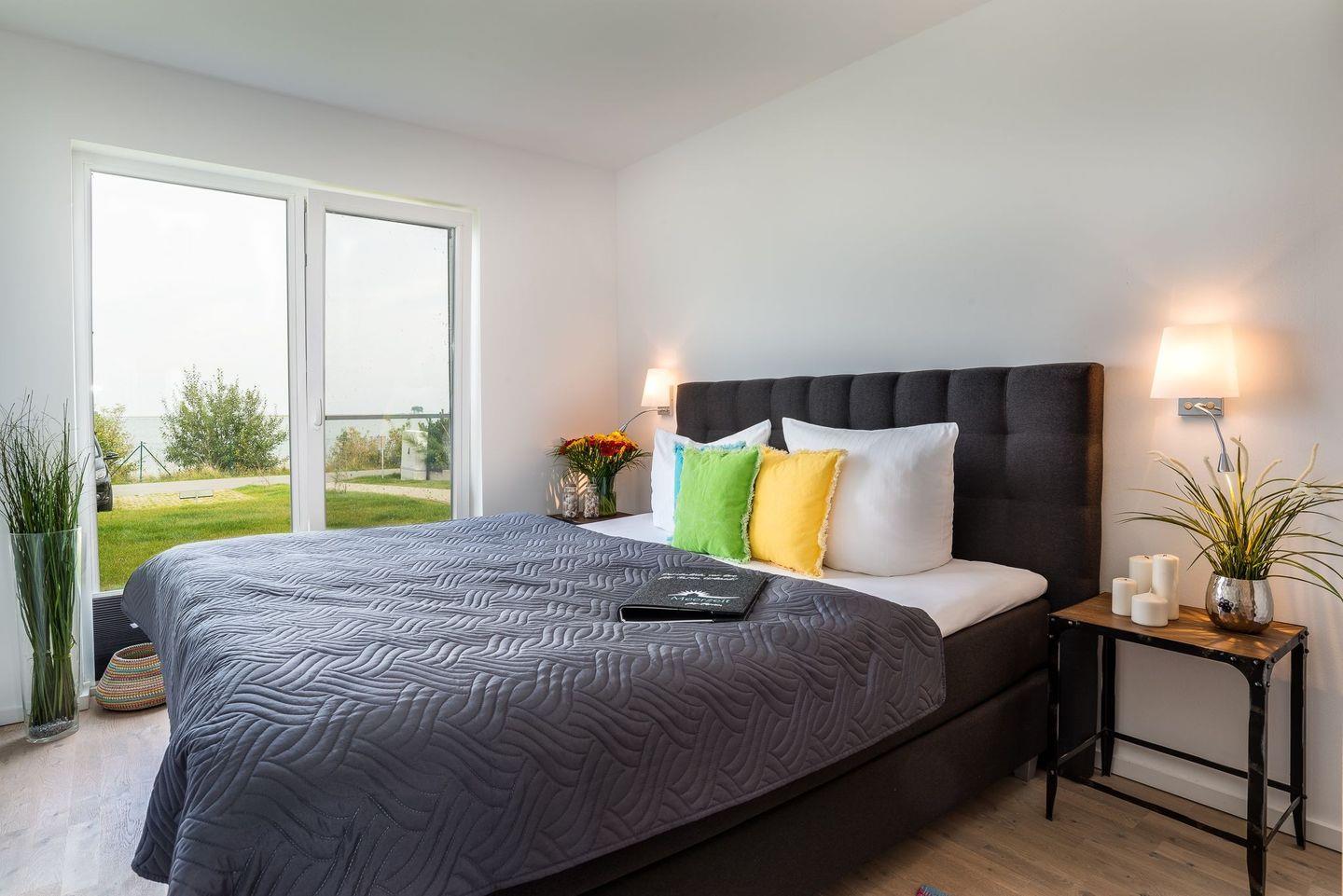 Die traumhaft eingerichteten Schlafzimmer mit hochwertigen Boxspringbetten (1,80 x 2,00) sind nach Nord/Ost ausgerichtet und garantieren den Blick auf einen wunderbaren Sonnenaufgang über der Schleimündung mit Leuchtturm oder aber den Sonnenuntergang über Maasholm.