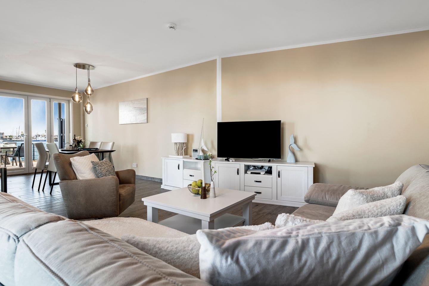 Luxusferienwohnung mit herrlichem Blick auf das Hafenbecken, gehobener Ausstattung, Wellnesssauna und Terrasse in Traumlage.