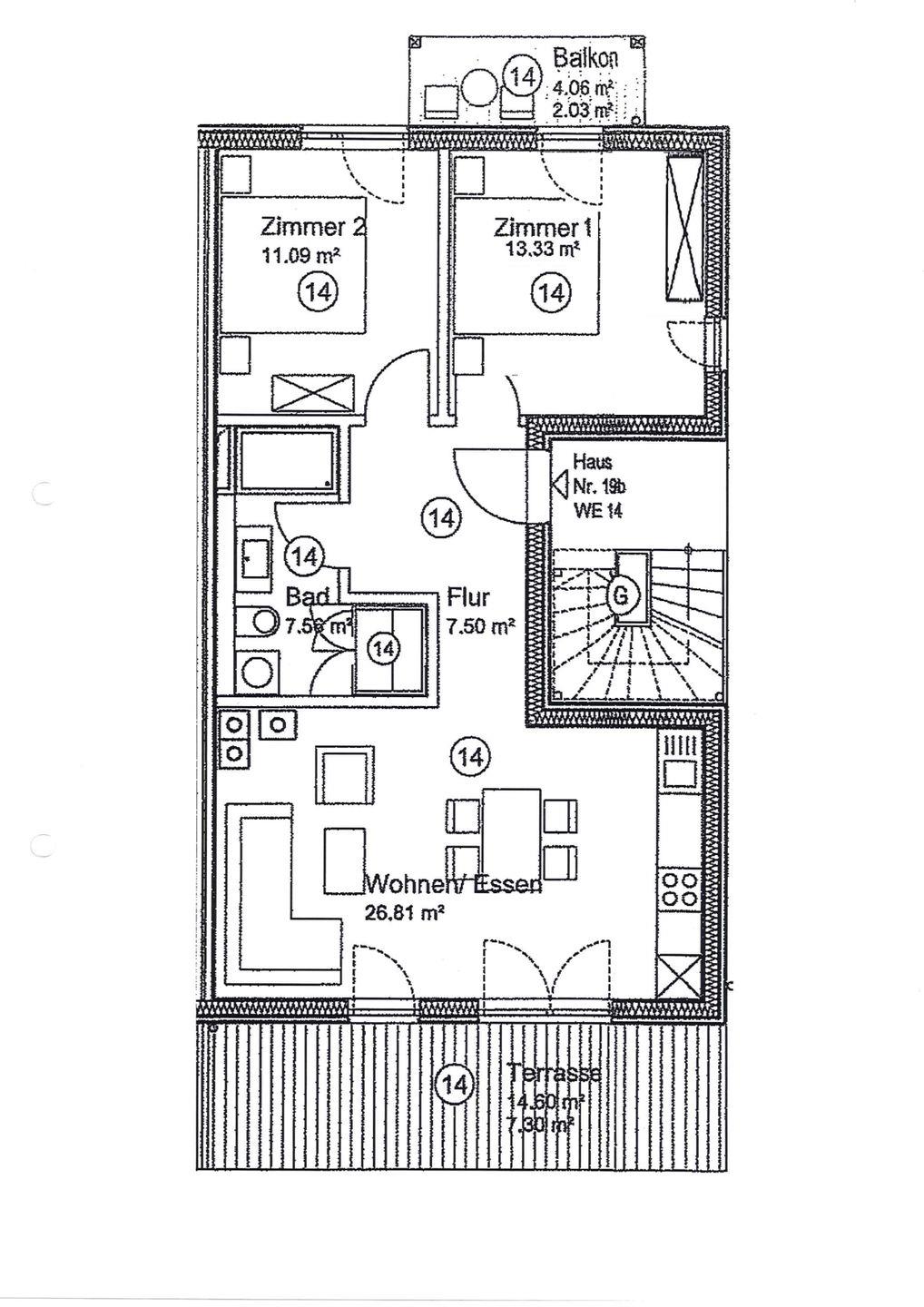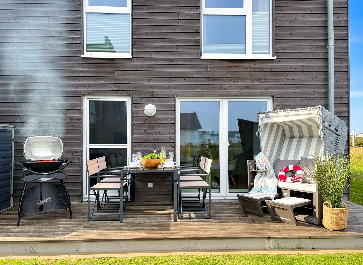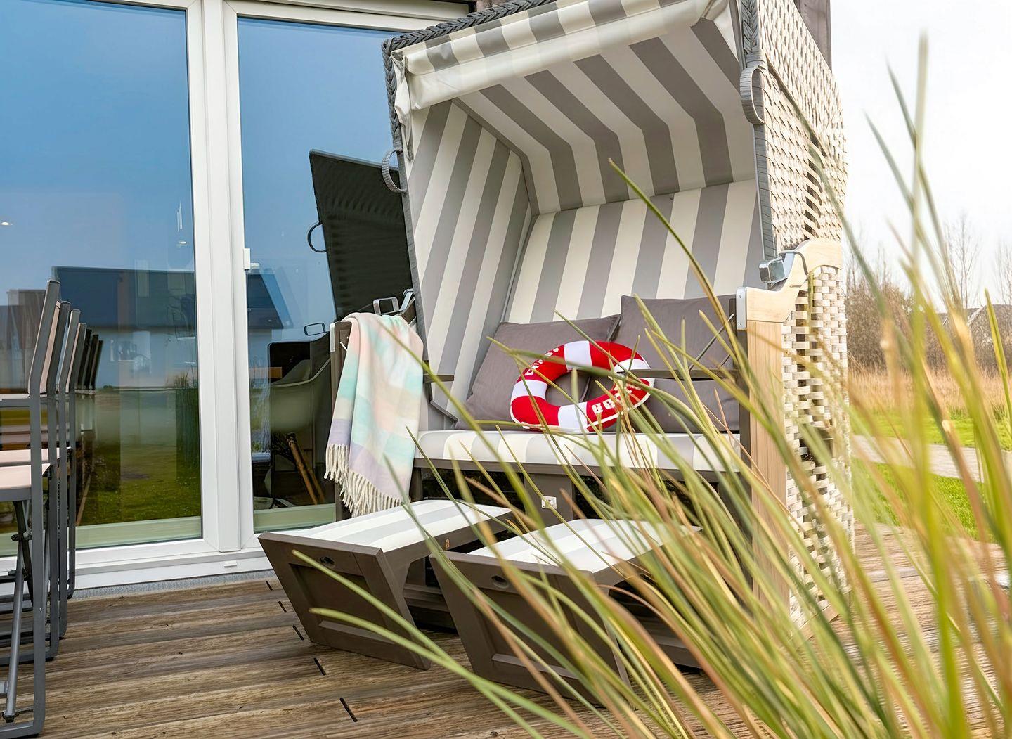 Ferienwohnung auf der Südhalbinsel mit großer Terrasse nahe an der Promenade.