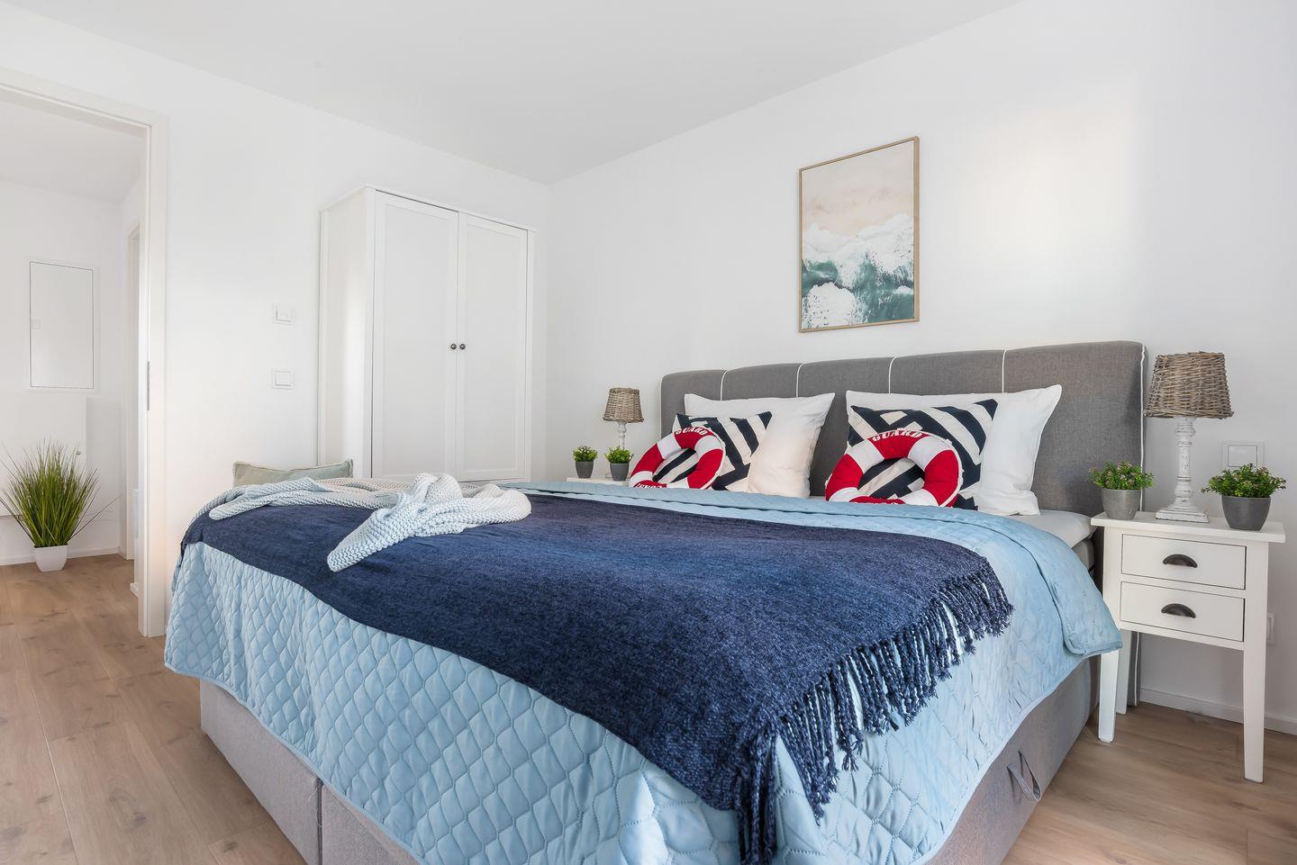 Genießen Sie die moderne, maritime Atmosphäre in der stilvollen Ferienwohnung, die mit ihrem Beach House Style und den komfortablen Boxspringbetten (1,80m x 2,00m) Platz für bis zu vier Personen bietet. Hunde sind bei uns nicht nur erlaubt, sondern ausdrücklich willkommen.