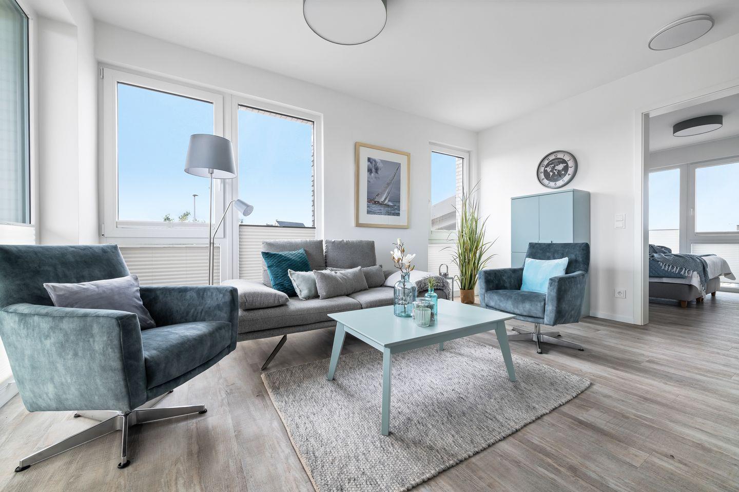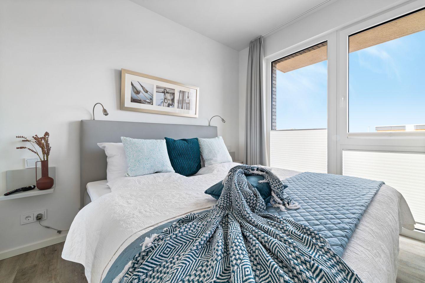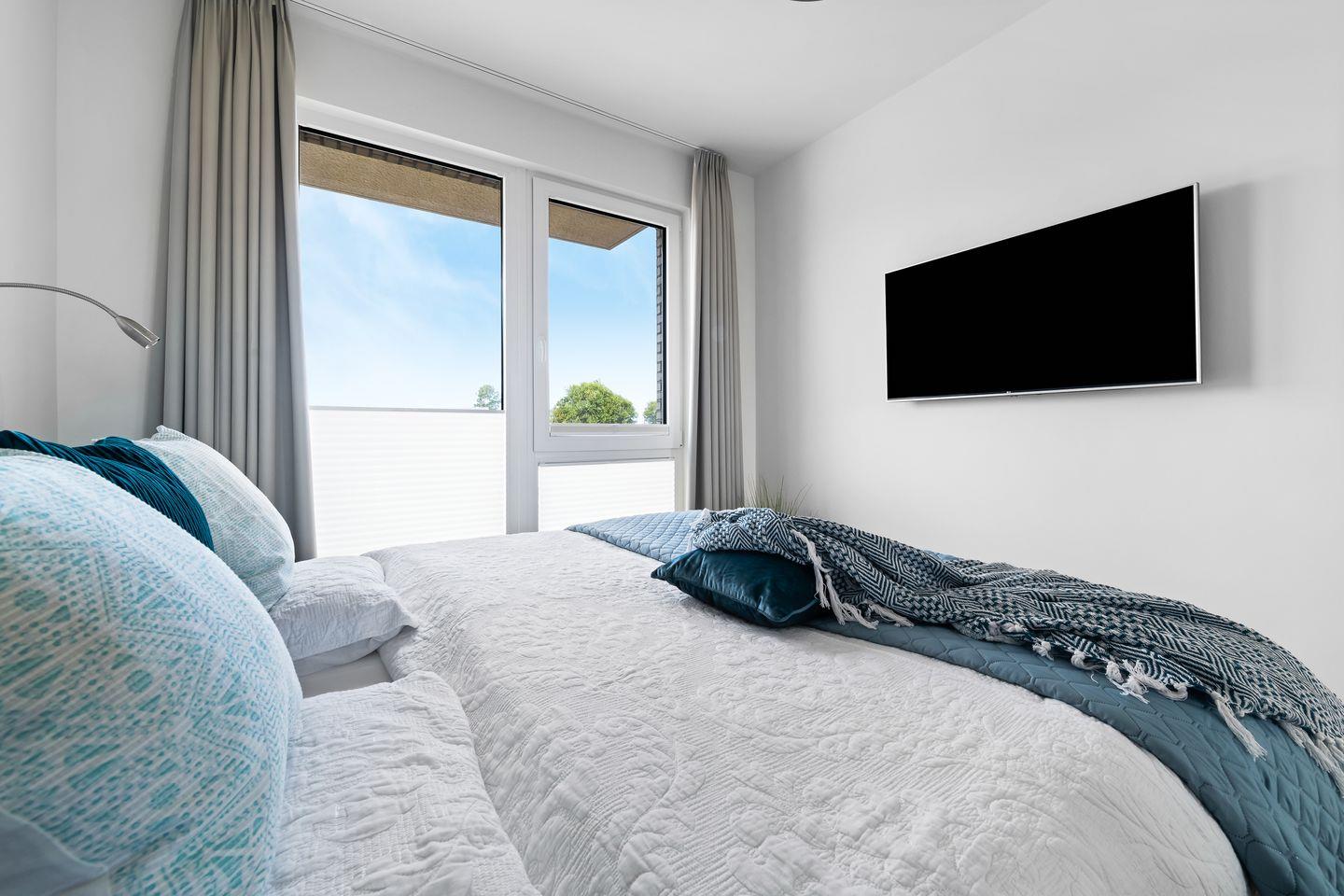 Das Apartment "BeachTerraceOne“, bietet zwei Schlafzimmer, ausgestattet mit hochwertigen Boxspringbetten für einen erholsamen Schlaf. Entspannen Sie sich in der finnischen Sauna oder genießen Sie ein Bad in der großzügigen Wanne.