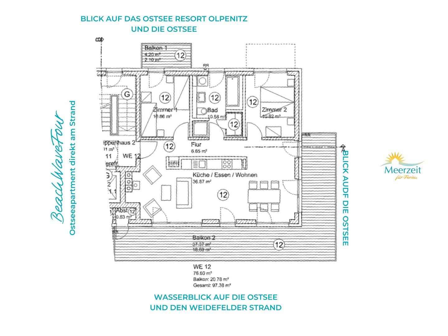 Ostseeurlaub in moderner Ferienwohnung mit bodentiefen Panoramafenstern und Meerblickt-Eckbalkon direkt am Weidefelder Strand: Genießen Sie exklusives Wohnen im Apartment "BeachWaveFour", gelegen im 2. Obergeschoss eines Apartmenthauses. Im Haus, das insgesamt über vier Stockwerke verfügt, befindet sich ein Aufzug, sodass auch Gäste mit eingeschränkter Mobilität ihr Feriendomizil gut erreichen können.