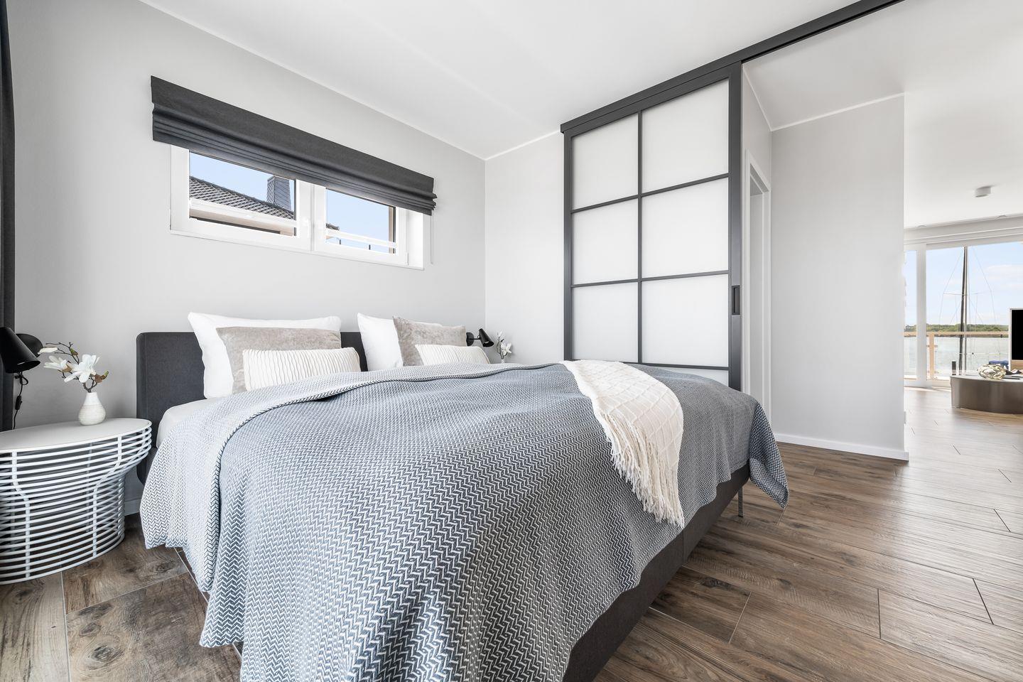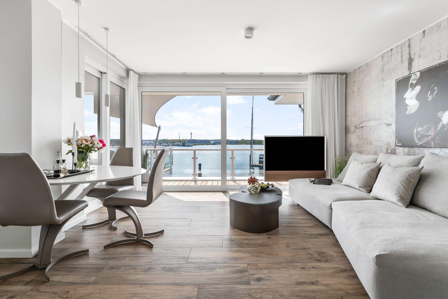 Willkommen im Ostseeresort Olpenitz! Die private Ferienwohnung "Leuchtfeuer" im Obergeschoss eines Zweiparteienhauses bietet genügend Platz für bis zu 2 Personen. Mit eigener Sonnenterasse und einem traumhaften Blick auf die Schlei, das Hafenbecken und der Ostsee ist diese Wohnung eine Oase zum Entspannen. Die moderne Küche geht direkt in das Wohn- und Esszimmer über, in dem ein großes Sofa zum Relaxen einlädt. Der Masterbedroom verfügt über ein Doppelbett mit direkt angrenzendem Badezimmer.