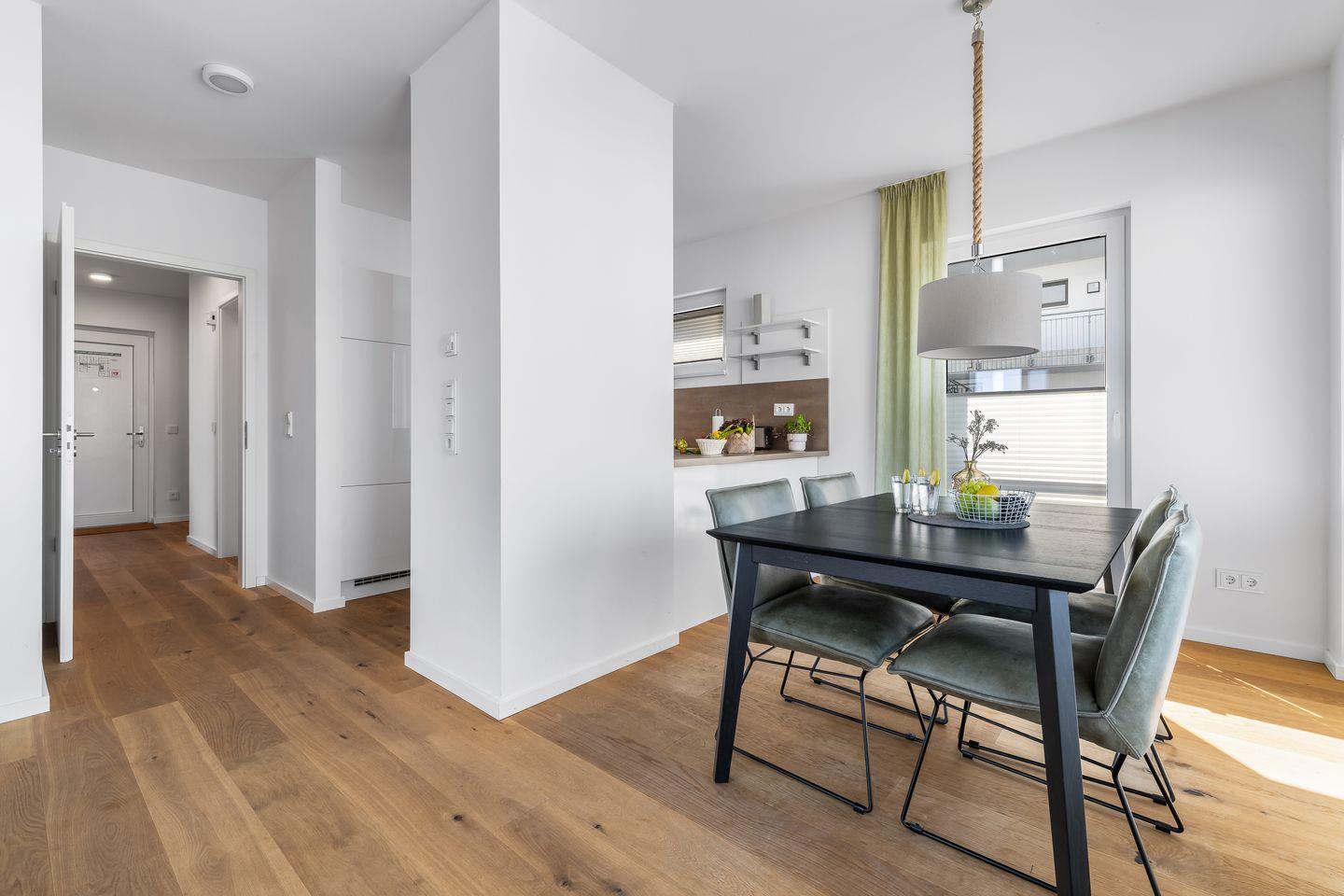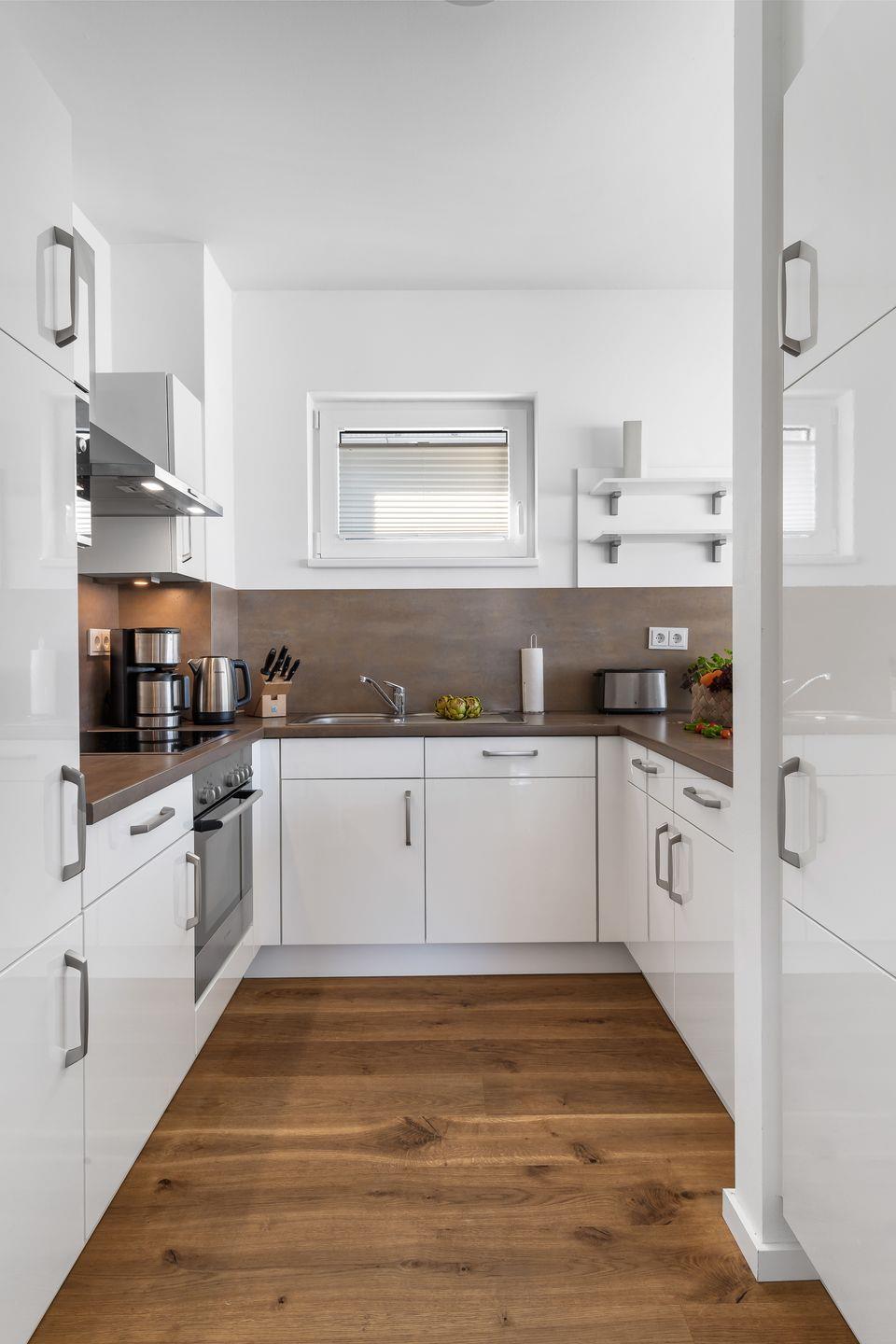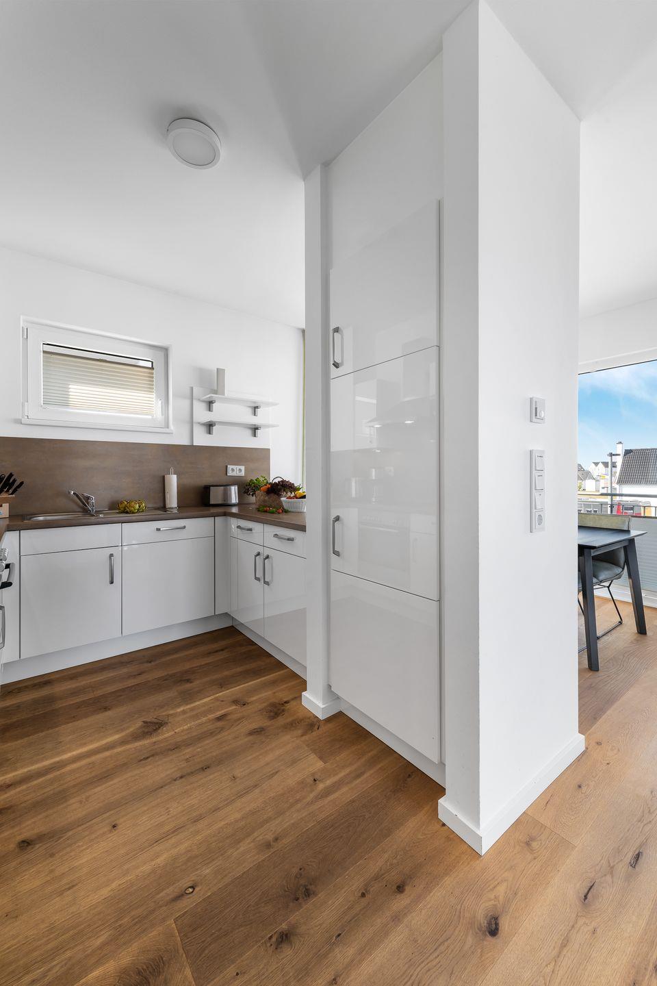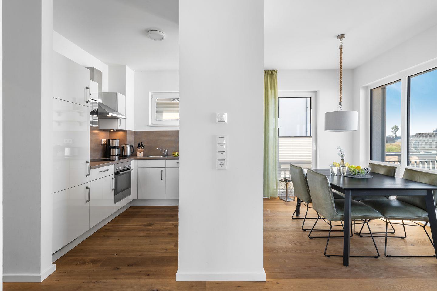 Die offene, moderne Einbauküche bietet alles, was das Hobbykoch-Herz begehrt! Die frisch zubereiteten Köstlichkeiten können im Anschluss am direkt angrenzenden Esstisch oder auf dem großzügigen Balkon verspeist werden. Außerdem bietet der Balkon den perfekten Ort für ein herrliches Sonnenbad. Hier ist Urlaubsstimmung vorprogrammiert!