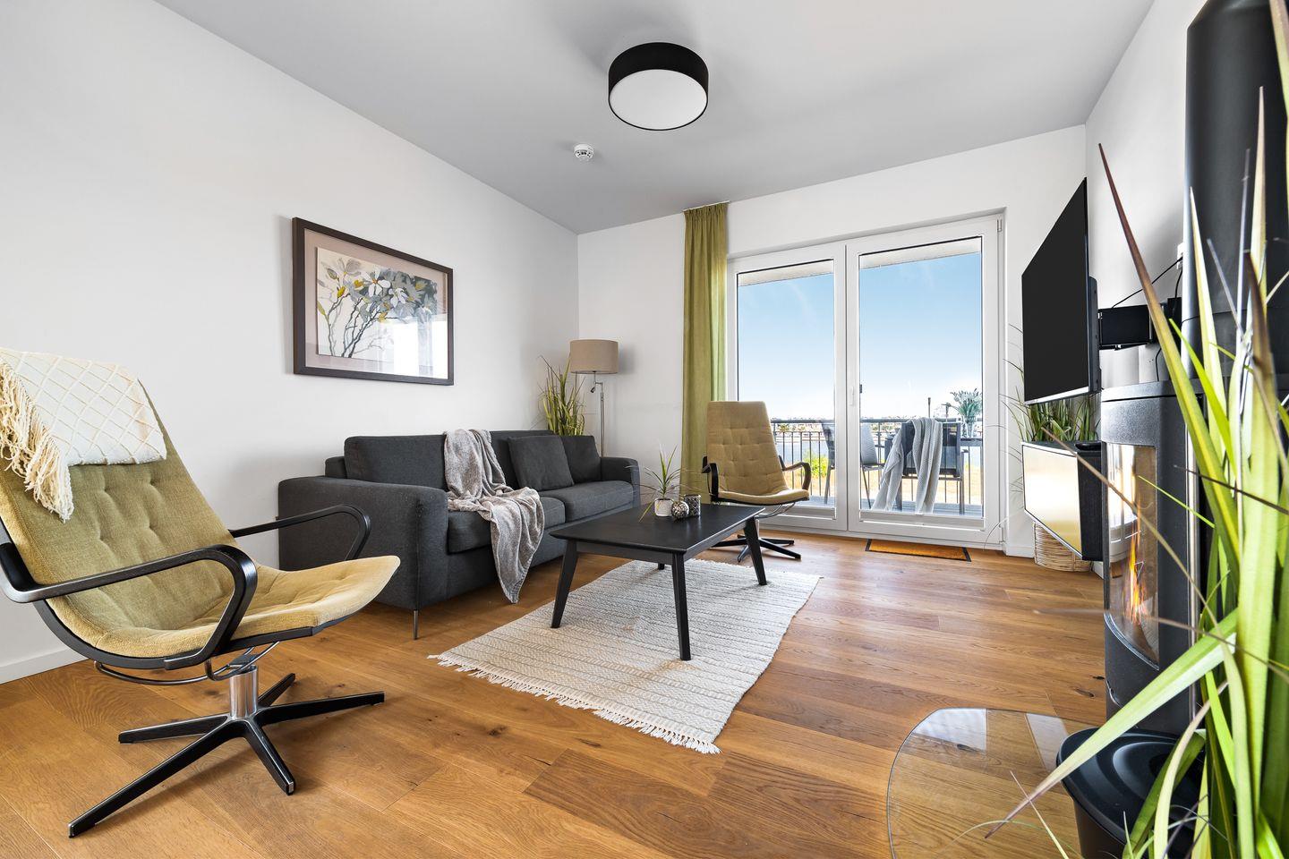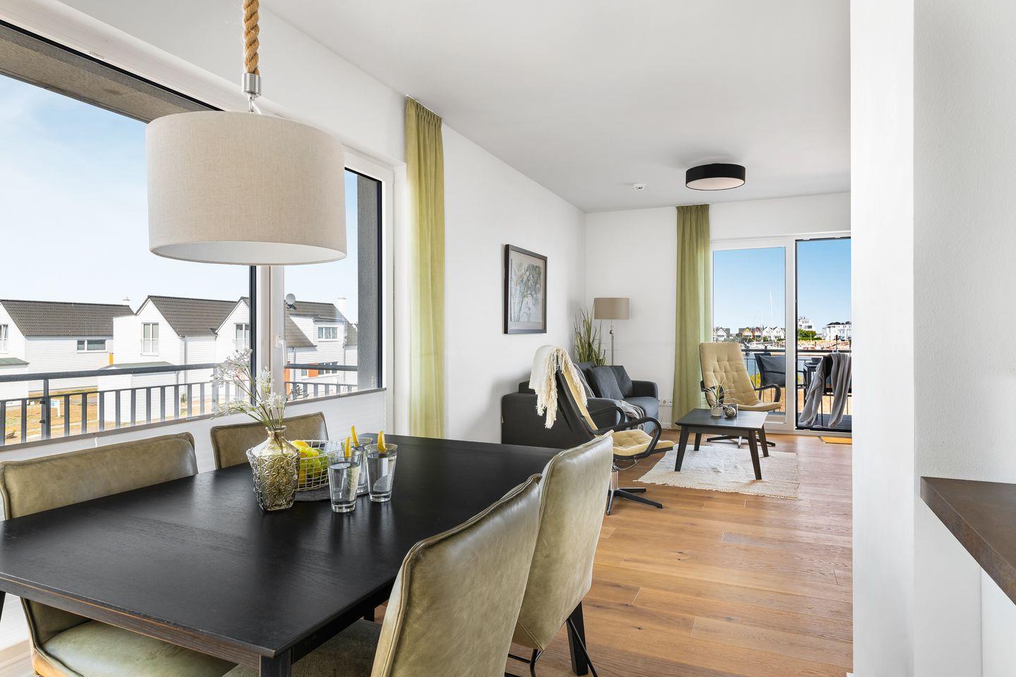 Luxusapartment direkt an der Ostsee mit Balkon,Blick auf den Hafen und Kaminofen