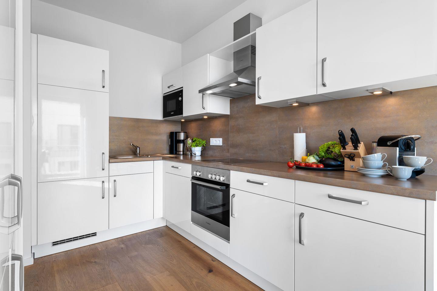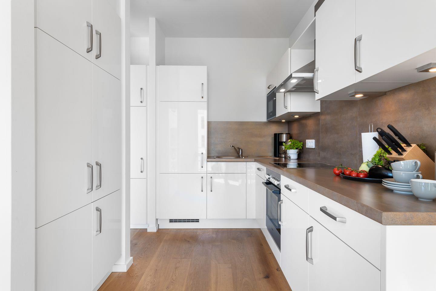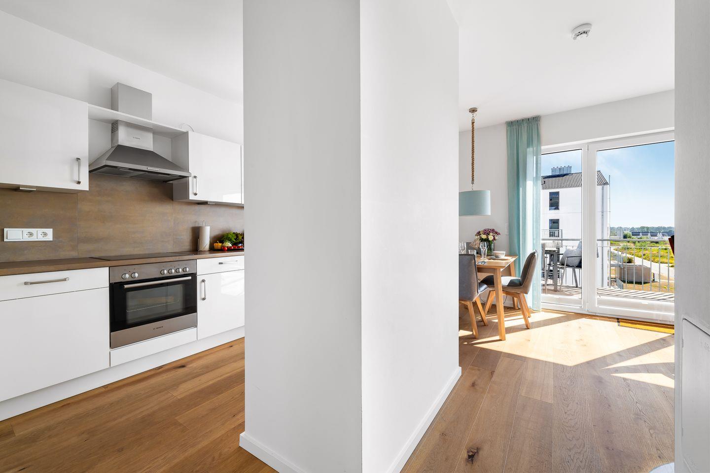 Auch die hochwertige und voll ausgestattete Einbauküche lässt die Herzen der Hobbyköche höherschlagen. Durch den direkt anschließenden Essbereich lassen sich gemütliches Beisammensein und das Zubereiten von Köstlichkeiten perfekt vereinbaren.