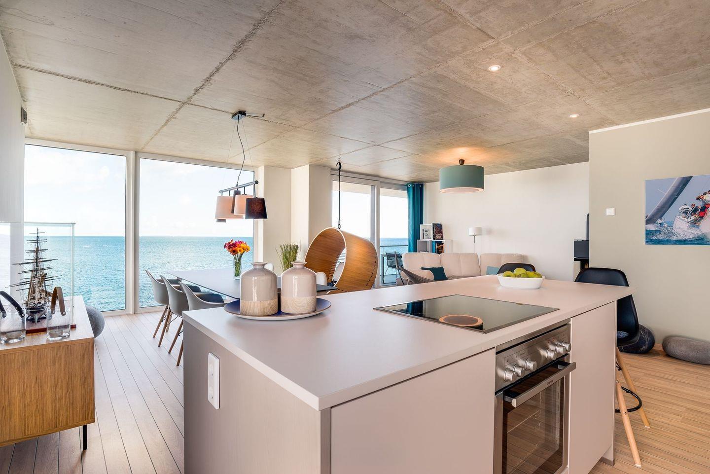 Die Ferienwohnung Weitblick wird im modernen skandinavischem Stil ausgestattet und besticht durch die große Panoramaglasfront, die unsere Gäste einen freien Blick auf die Ostsee genießen lässt.