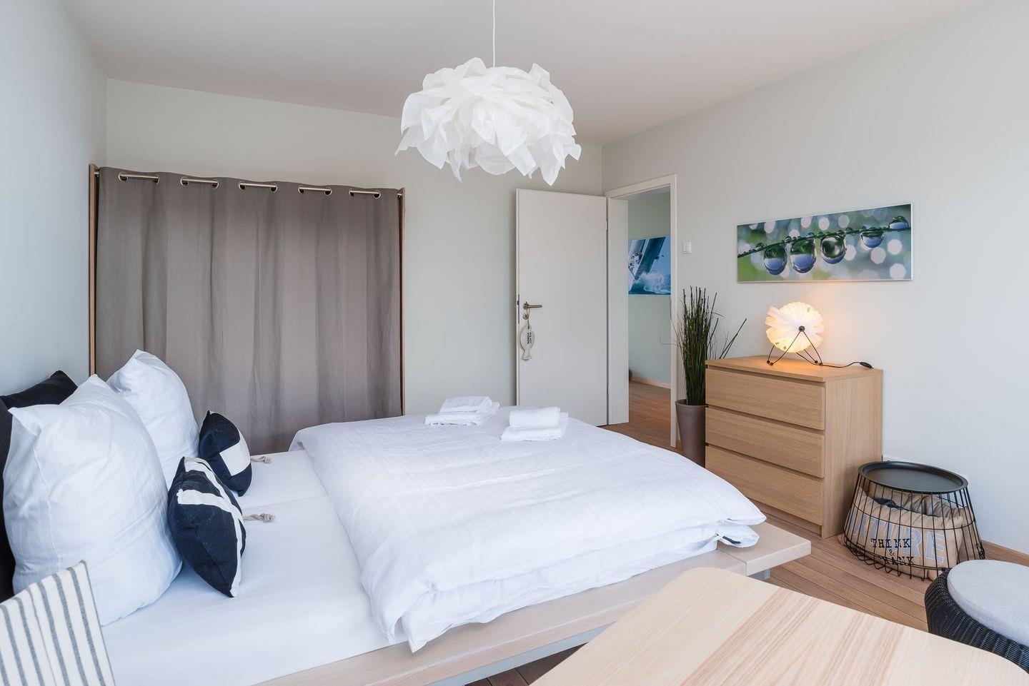 Zwei Schlafzimmer mit hochwertigen und gemütlichen Doppelbetten sorgen für einen erholsamen Schlaf. Ein weiteres Gäste-Bad steht ebenfalls zur Verfügung.