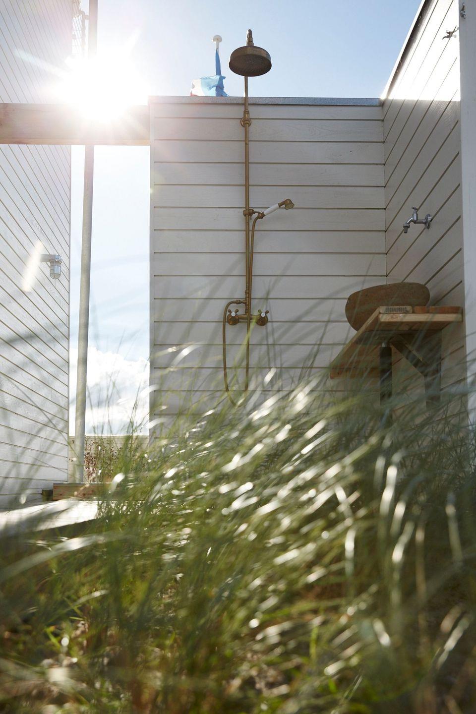 Sie kommen vom Erdgeschoss - auch Unterdeck genannt - direkt auf die großen Außenterrassen, die rings ums Haus laufen und eine traumhafte Aussicht auf die freie Ostsee bieten. Nach einem Bad in der Olpenitz-Badebucht (nur 100 m entfernt!) duschen Sie sich den Sand einfach unter der Außendusche ab. Gleich am Eingang empfängt Sie eine großzügige Garderobe. Daneben liegt ein schönes Schlafzimmer mit Zugang zur Terrasse und einem gemütlichen Doppelbett (1,60 x 2,00 m) für zwei Personen. Auf dieser Etage finden Sie außerdem ein Badezimmer, ein Gäste-WC und die Grobküche. Der praktische Hauswirtschaftsraum bietet eine Waschmaschine sowie einen Trockner.