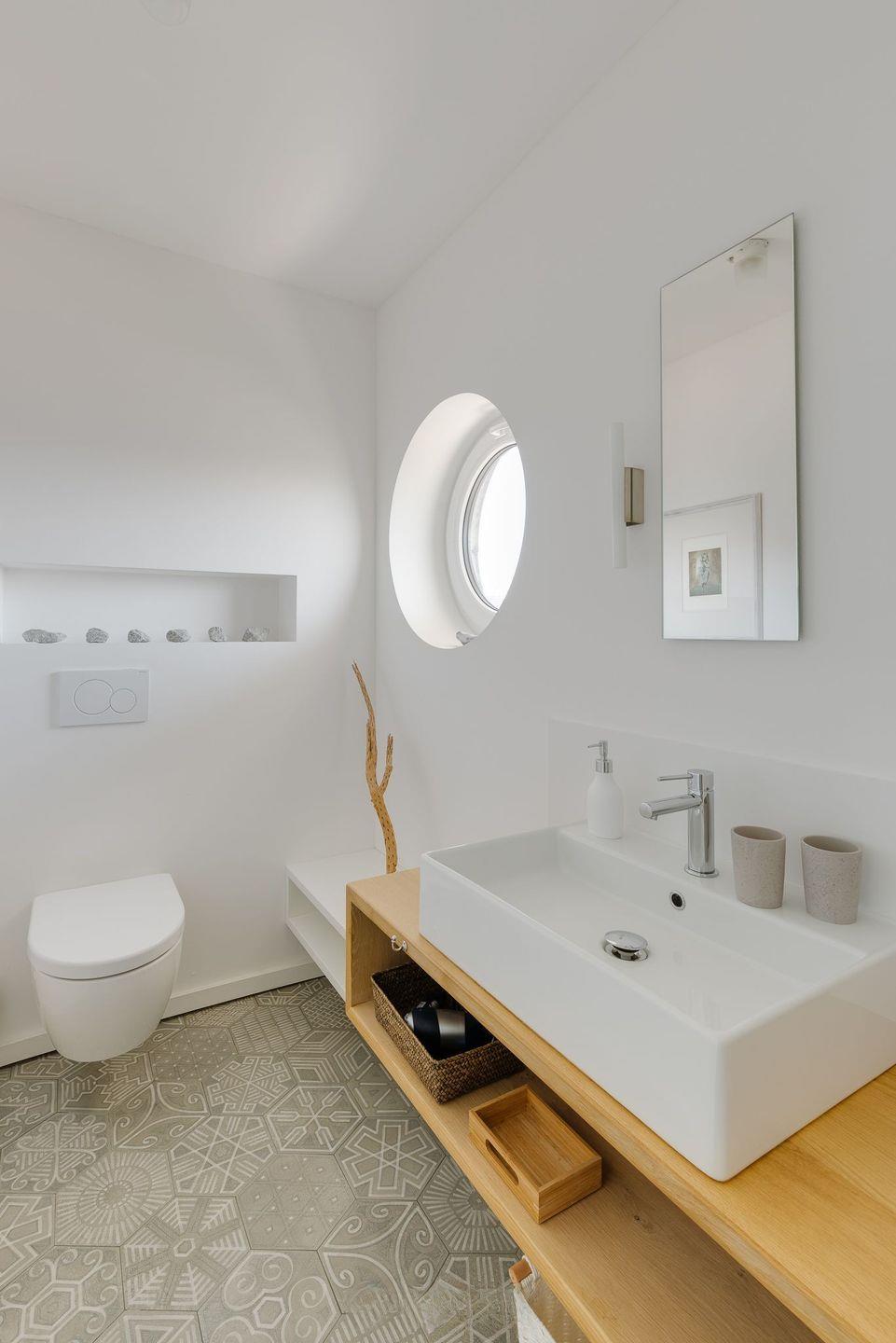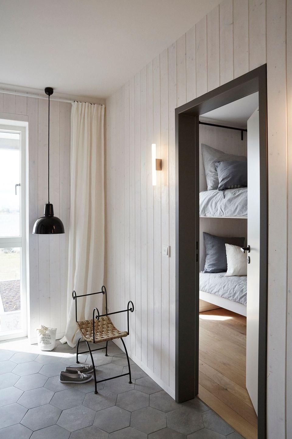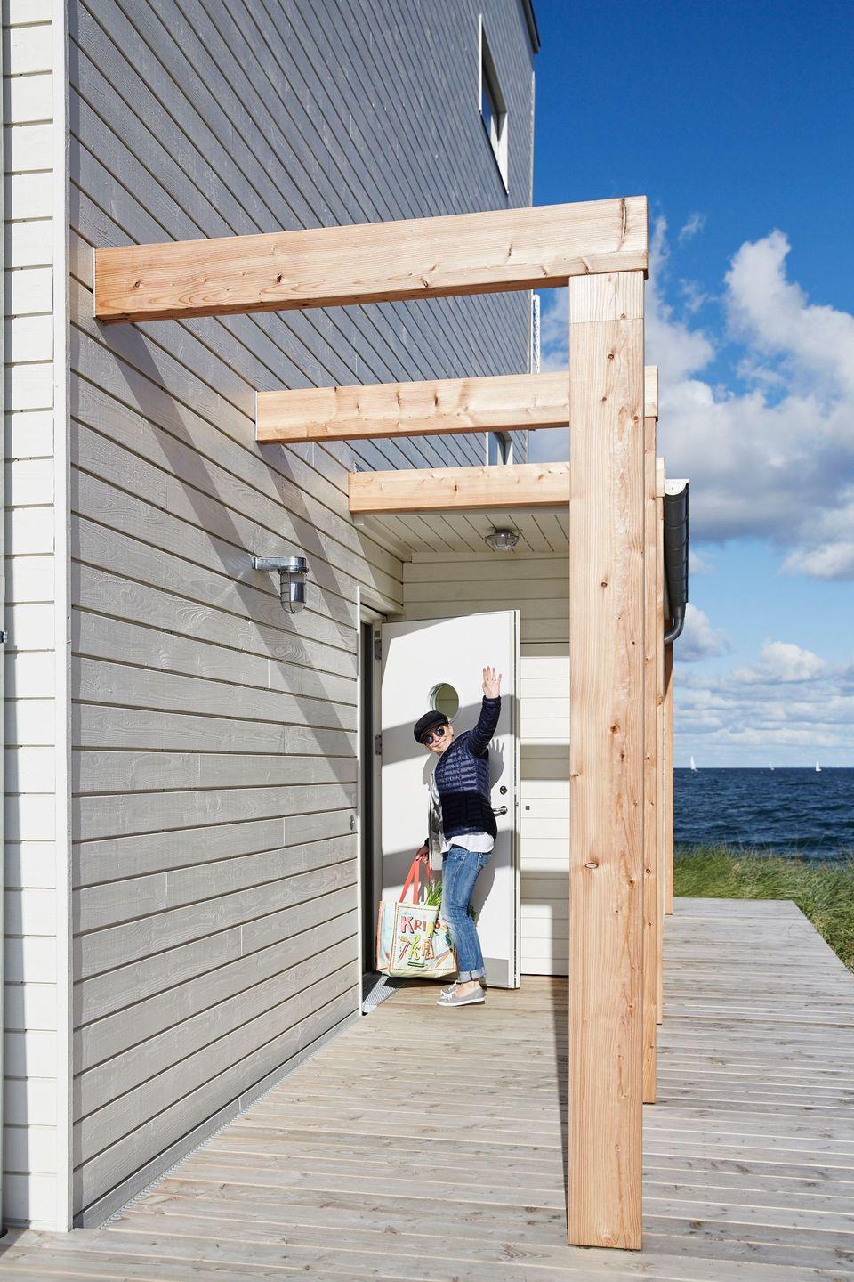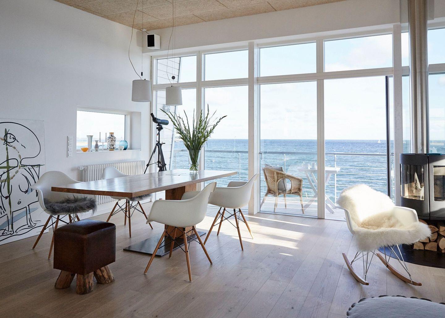 Zwei Innenarchitekten schufen dieses ökologische Holzhaus mit natürlichen Materialien und hellen Farben. Das 2016 fertiggestellte Ostseeferienhaus bietet drei Parkplätze.