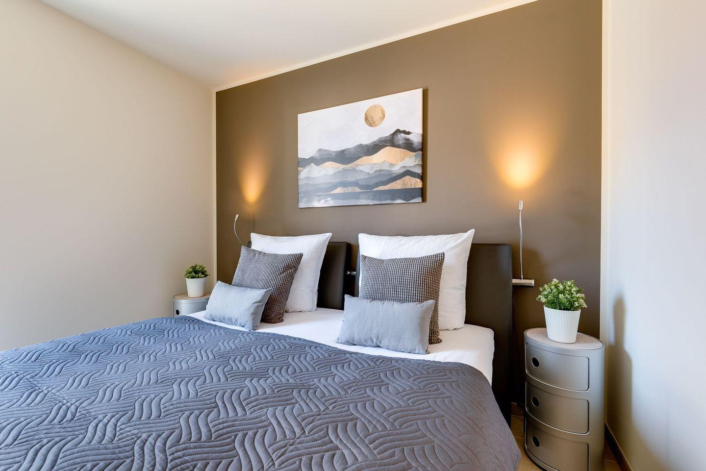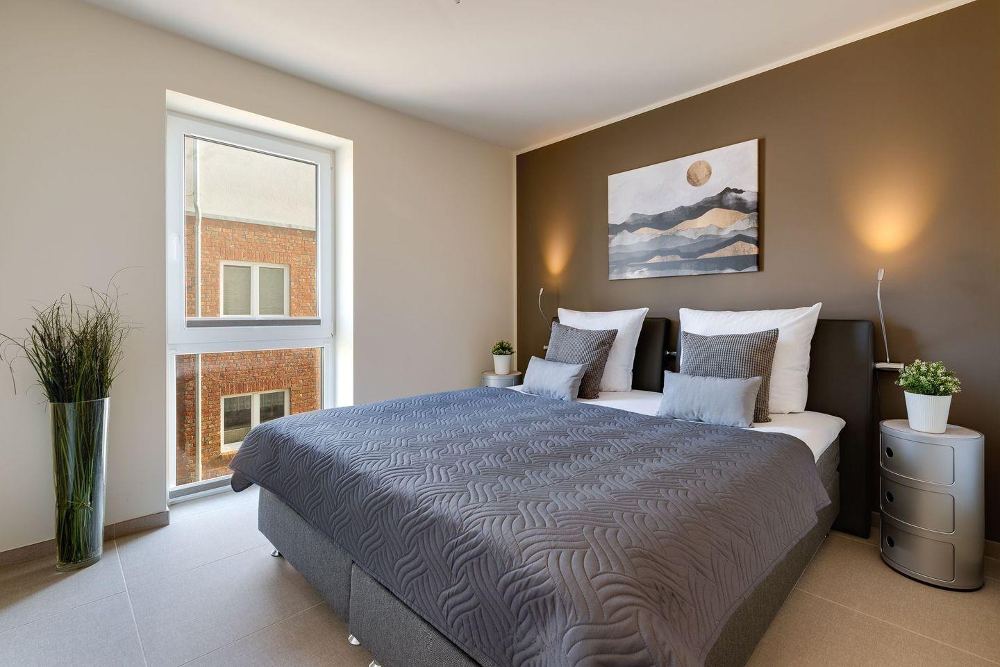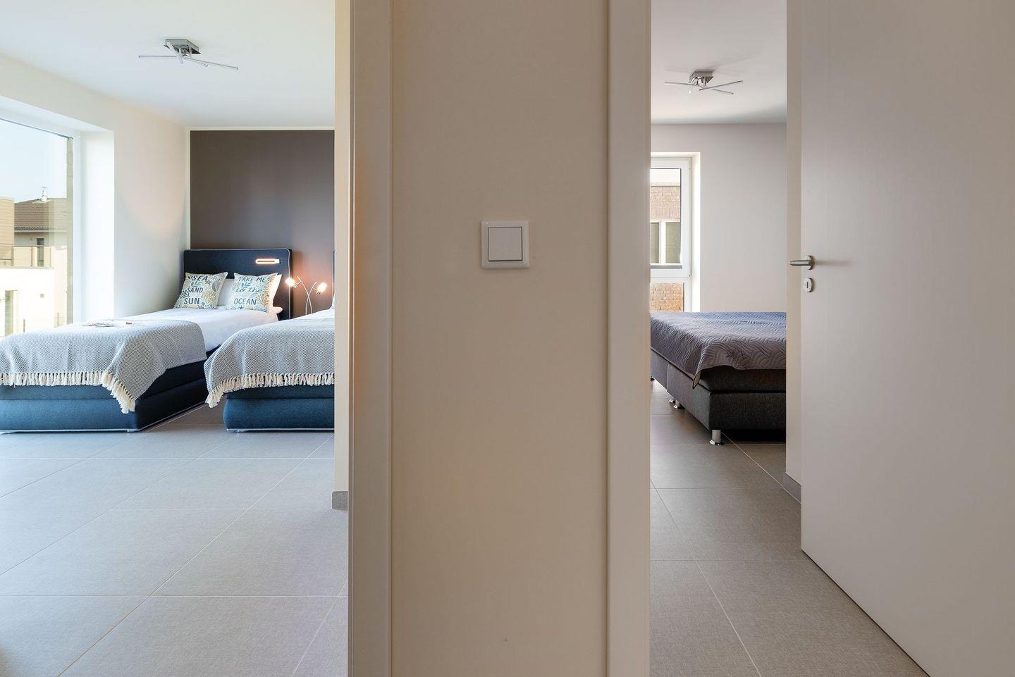In beiden Schlafzimmern befinden sich hochwertige Boxspringbetten und im Masterbedroom außerdem ein großer Kleiderschrank. Das zweite Schlafzimmer verfügt über zwei einzelne Boxspringbetten und zwei Kommoden, die ausreichend Aufbewahrungsraum bieten. Aus diesem Schlafzimmer kann beim Aufwachen schon der Blick auf die freie Ostsee genossen werden. Alle Schlafzimmer sind mit Plissees und Verdunklung versehen, sodass einem erholsamen Schlaf nichts im Wege steht.