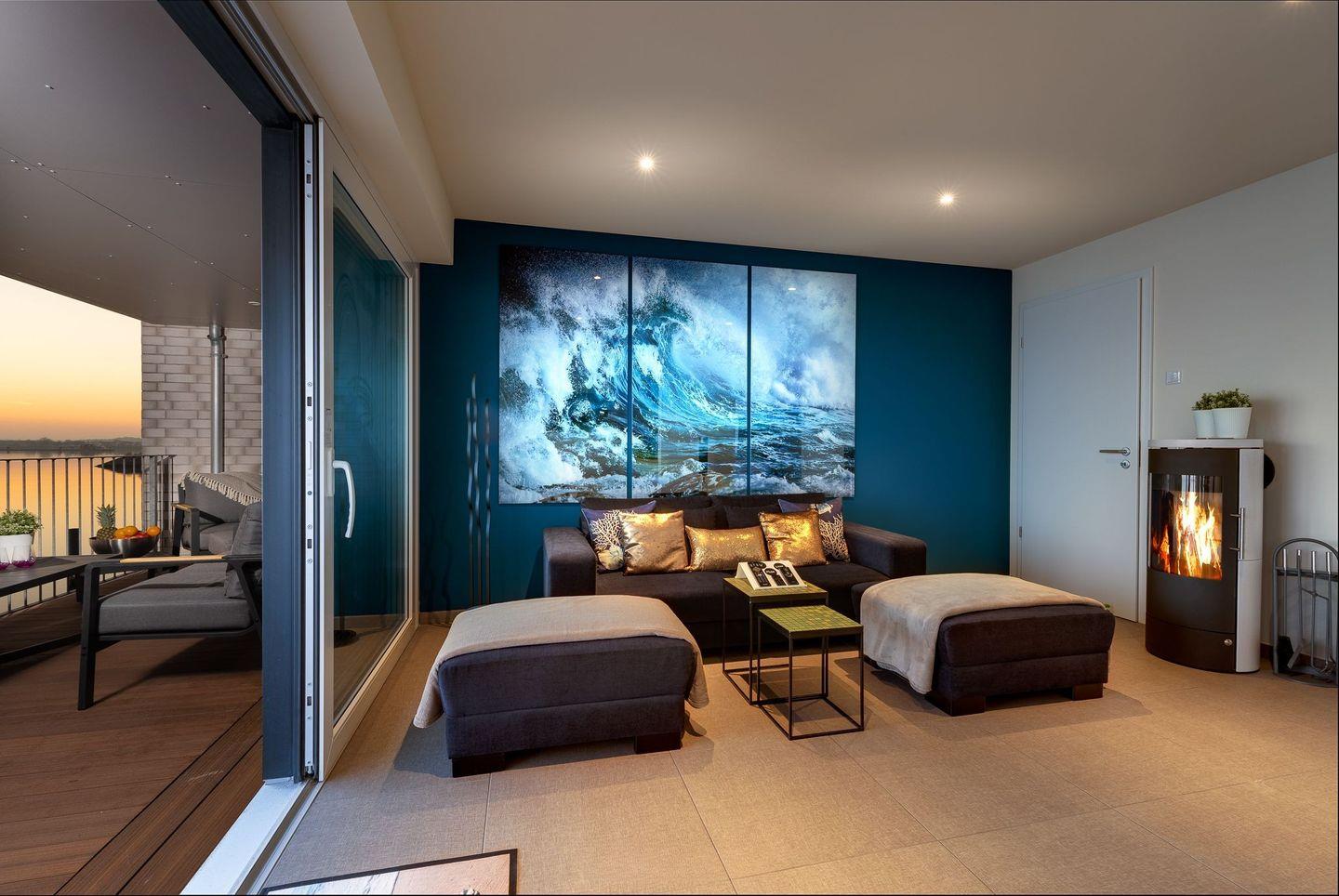 The Wave: Luxusferienwohnung direkt am Wasser mit Wärmeliege, Sauna und Kamin