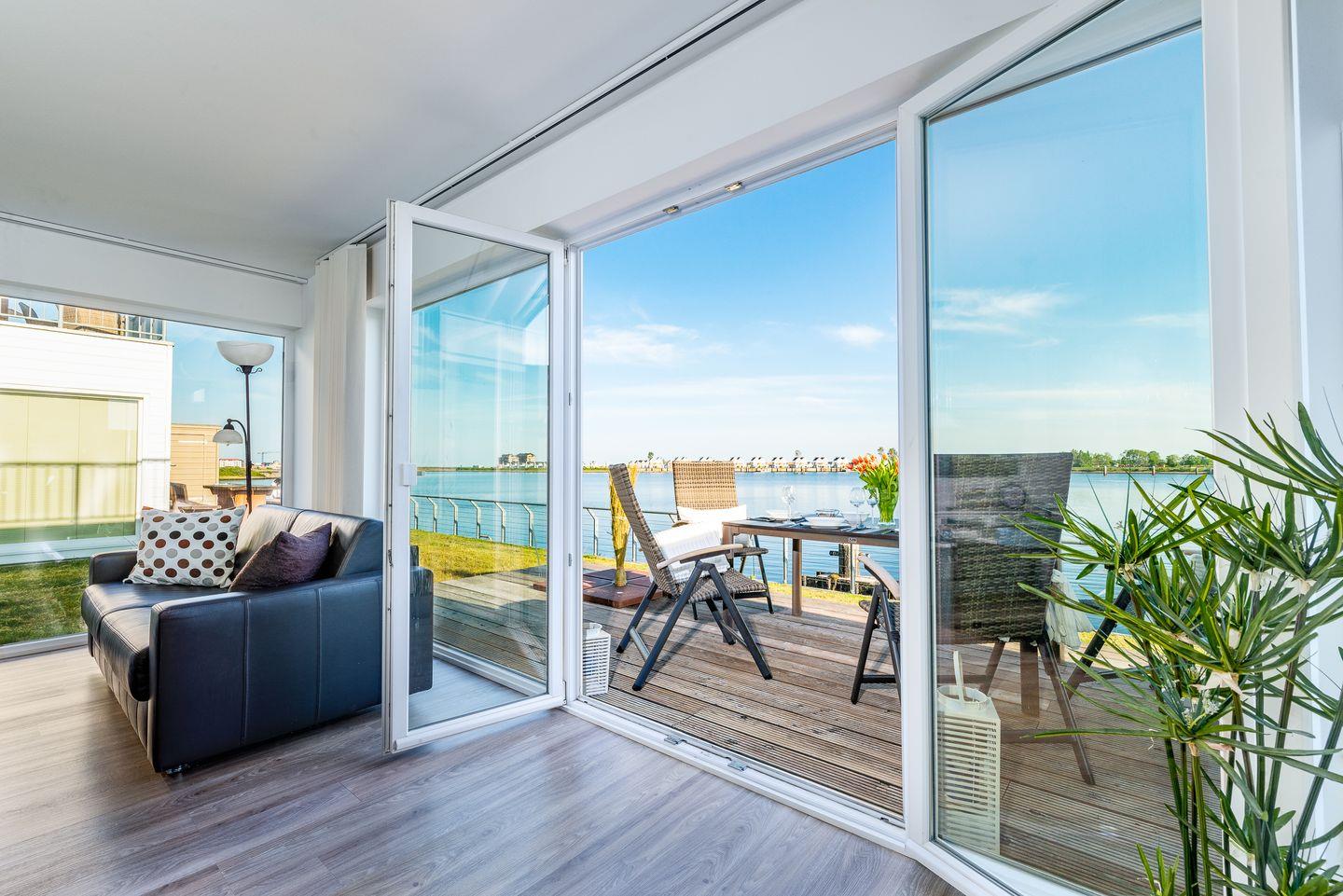 Diese moderne Ferienwohnung liegt auf einem beeindruckenden Kai, zwischen Schlei und Ostsee und bietet somit Wasserblick auf zwei Seiten. Genießen Sie den entspannten Blick auf den Sporthafen auf der einen Seite, direkt von Ihrer Terrasse aus, und erwachen Sie morgens mit Blick auf die Schlei auf der Anderen.
