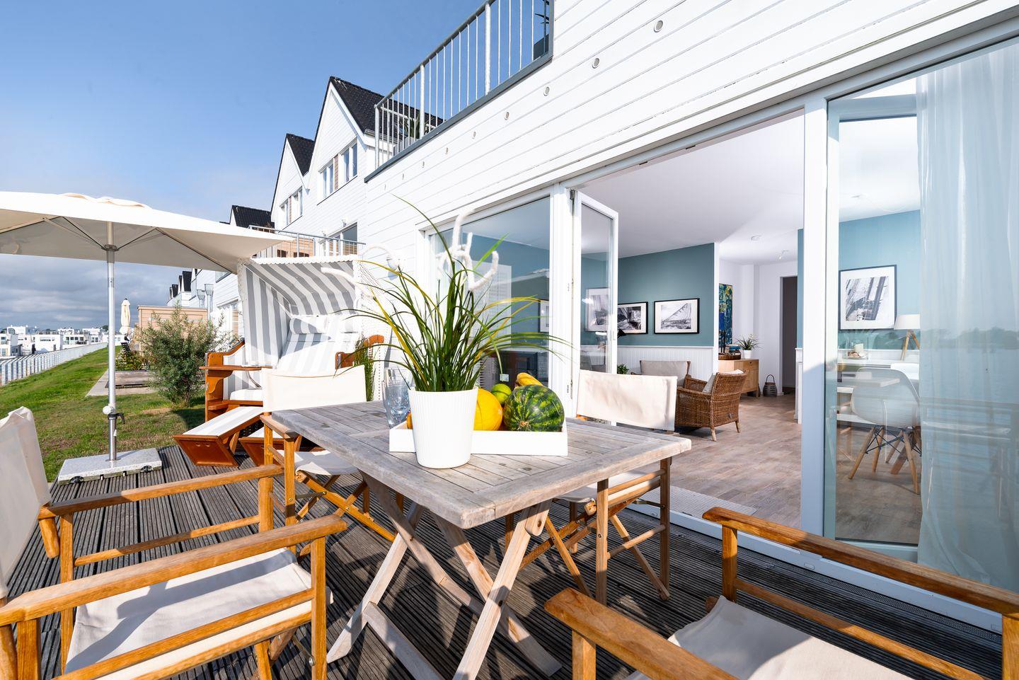 SÜDTERRASSE MIT STRANDKORB