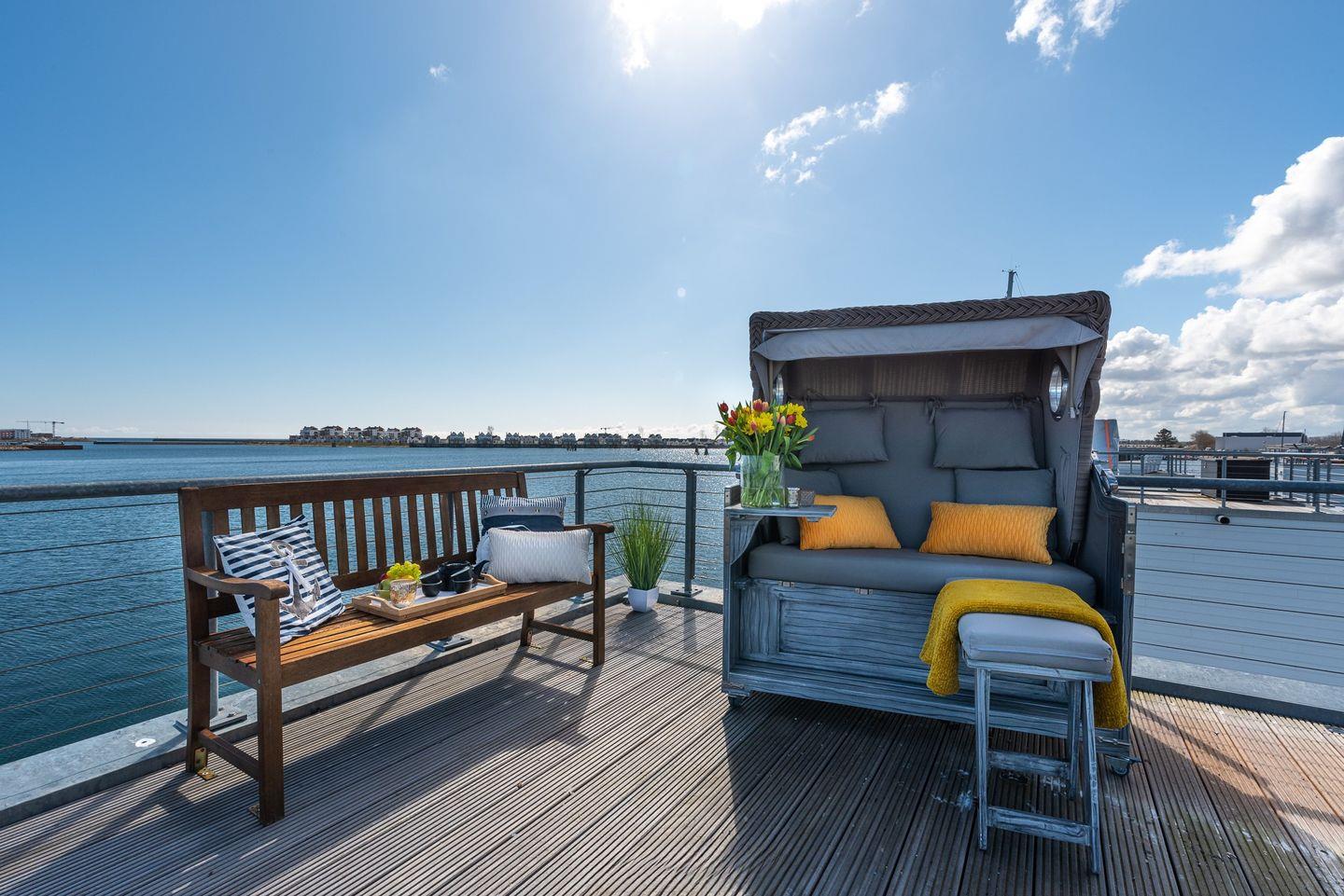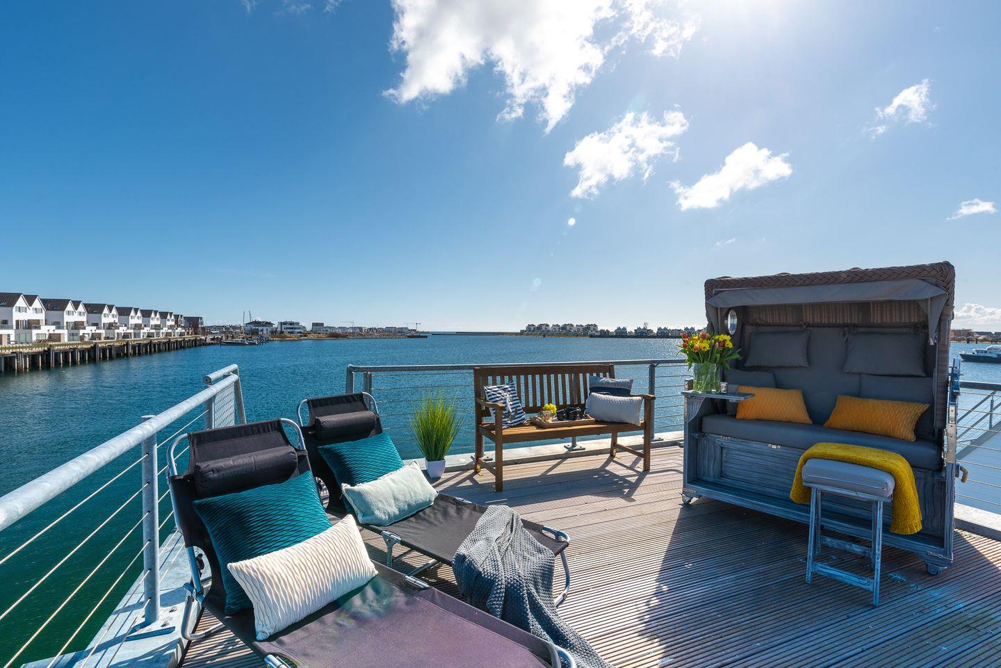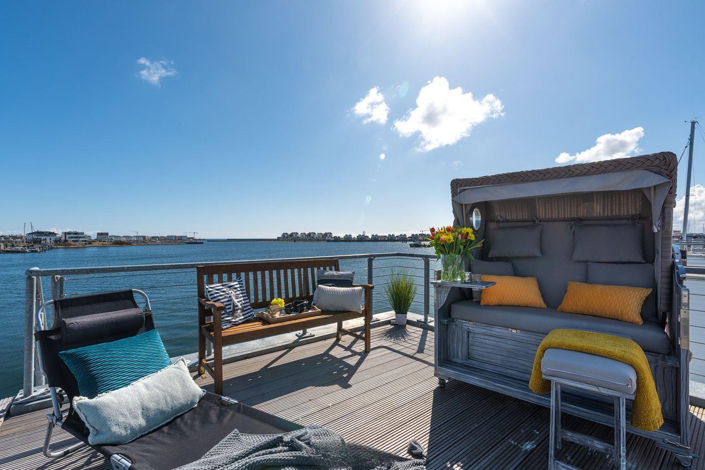 Im schwimmenden Ferienhaus "Störtebeker", über 2 Etagen, wird Ihr Traum vom Urlaub auf dem Wasser wahr. Das Wasserhaus befindet sich, in erster Reihe, im Ostseeresort Olpenitz. Moderne Architektur und stilvolle maritime Innenausstattung, kombiniert mit dieser einmaligen Lage, machen den Aufenthalt zu einem besonderen Erlebnis. Entspannung bieten die exklusiven Terrassen und das große Sonnendeck, von denen Sie einen fantastischen Blick auf die Ostsee und auf die Schlei genießen können.