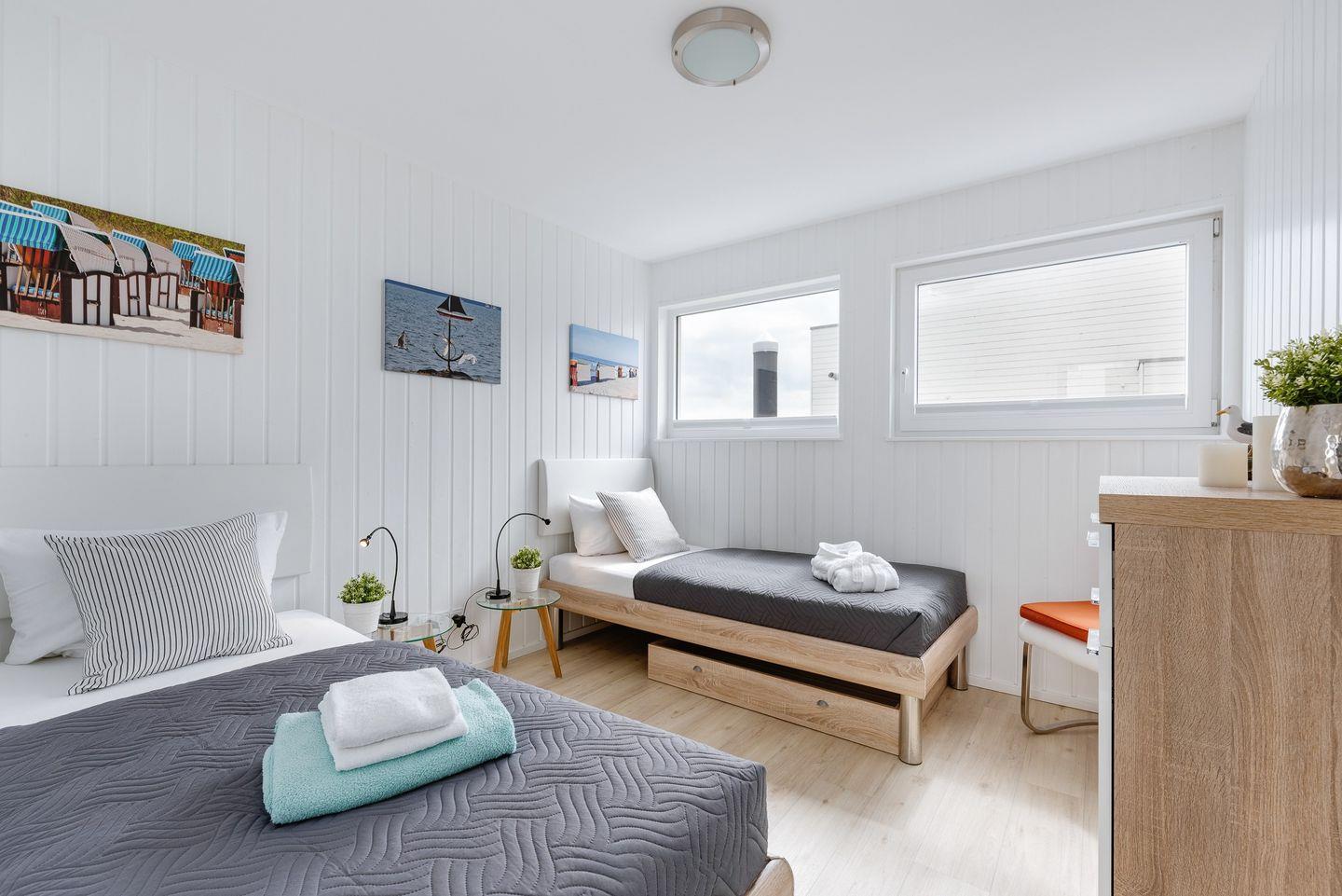 Das schwimmende Ferienhaus Störtebeker befindet sich in exklusiver Lage mit uneingeschränkter Aussicht in erster Reihe der Steganlage. Es handelt sich um ein Wasserhaus, das sich nicht in Ufernähe, sondern direkt auf dem Wasser, inmitten der Marina des Ostseeresorts Olpenitz, befindet. Das Wasserhaus steht auf einem Ponton und ist bequem über einen Steg erreichbar. Die Konstruktion gewährleistet eine ruhige Lage auf dem Wasser. Es verfügt über keinen Motor und kann nicht aus Olpenitz bewegt werden. Die zwei Schlafzimmer liegen direkt über dem Wasser. Aufgrund der Lage in erster Reihe genießen Sie einen freien Blick auf die Hafeneinfahrt und die Ostsee. Auf dieser Etage befindet sich auch das Duschbad.