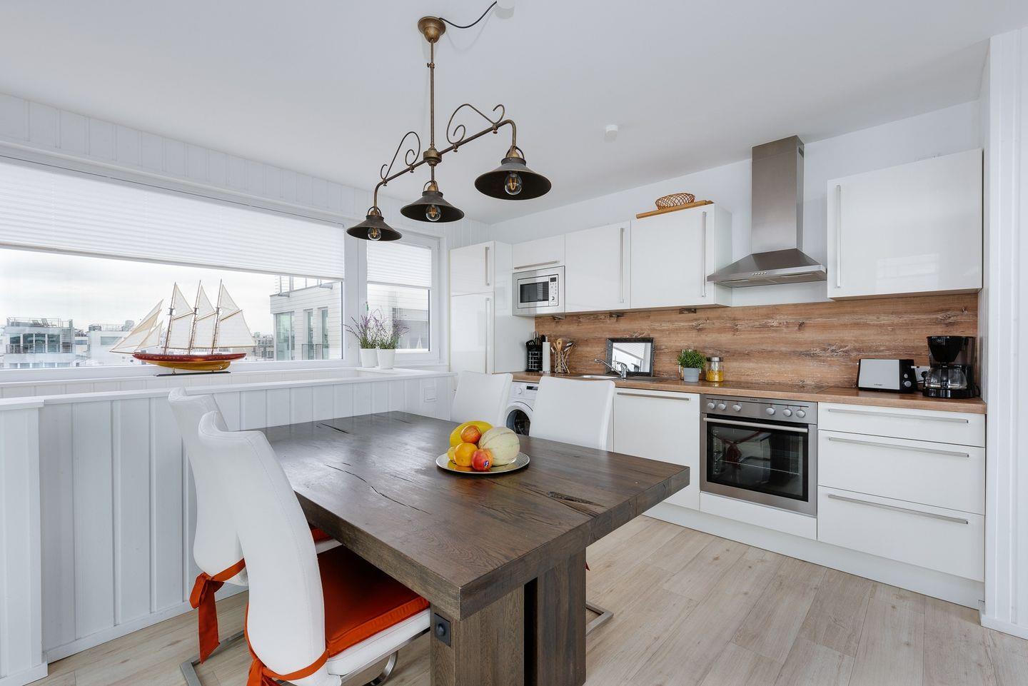 Über eine Treppe gelangen Sie in den lichtdurchfluteten Wohnbereich mit Küchenzeile im Obergeschoss. Diese Etage ist loftartig gestaltet und durch Panoramafenster hell und einladend. Auch von hier aus haben Sie einen freien Blick auf das Wasser. Vom Wohnraum aus erreichen Sie die Terrasse mit Gartenmöbeln, die zum Verweilen einlädt. Auf dem Dach befindet sich ein Sonnendeck, das einen guten Blick auf die Segelboote ermöglicht. Zum Wasserhaus gehört ein Bootsanleger, der für Boote bis circa zehn Meter Länge geeignet ist. Von hier aus können Sie die Ostsee oder den Ostseefjord Schlei erkunden. Ein PKW-Stellplatz steht in der Nähe des Hauses zur Verfügung.