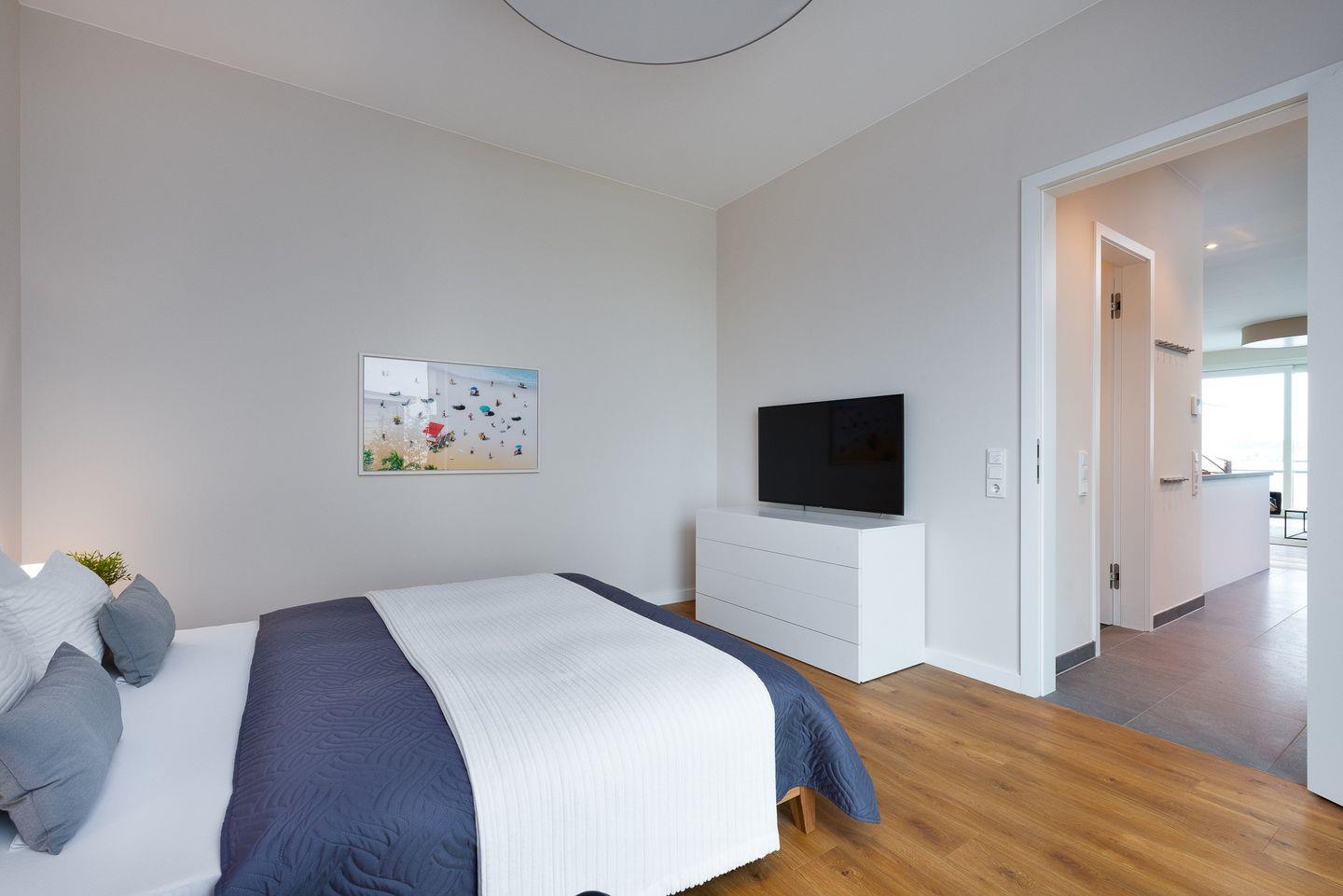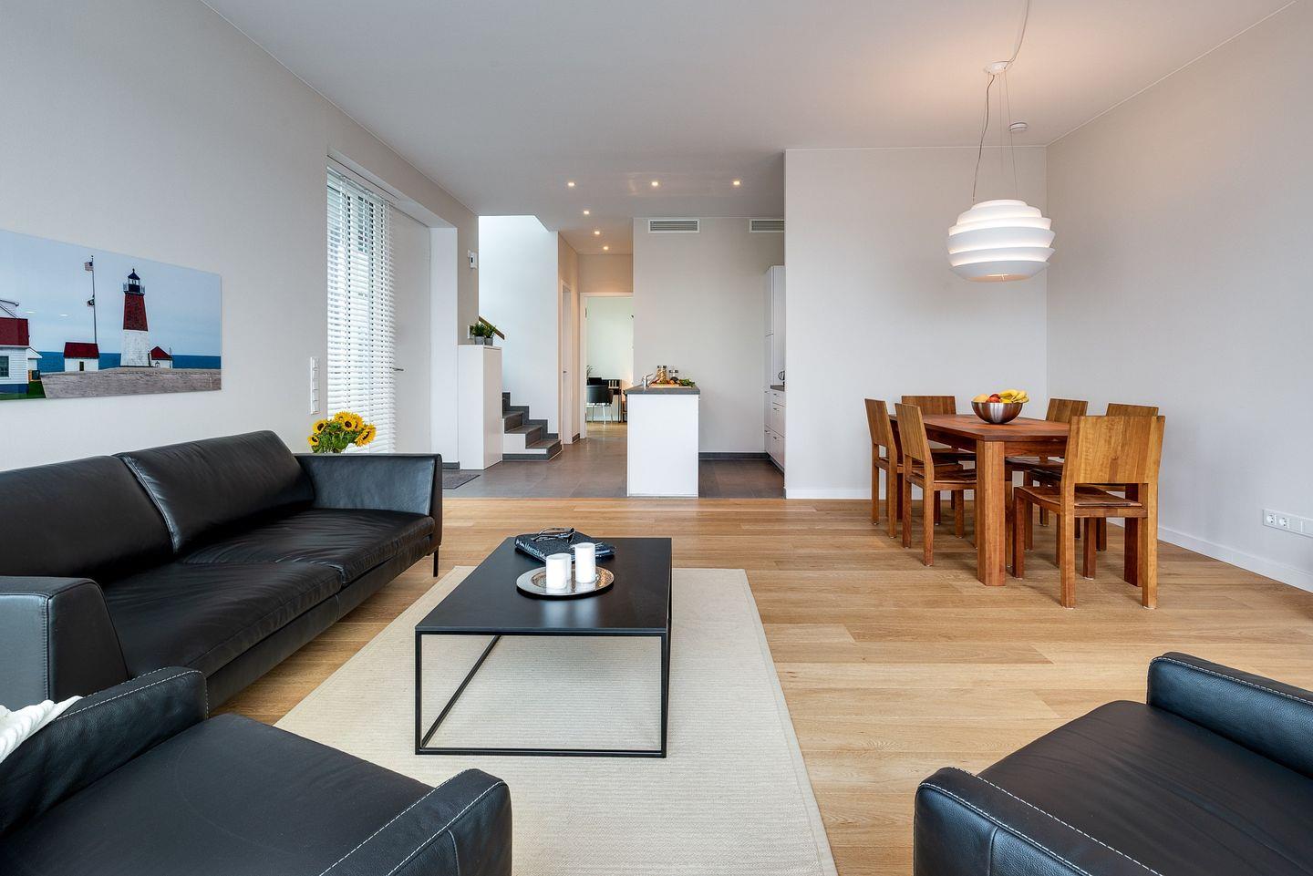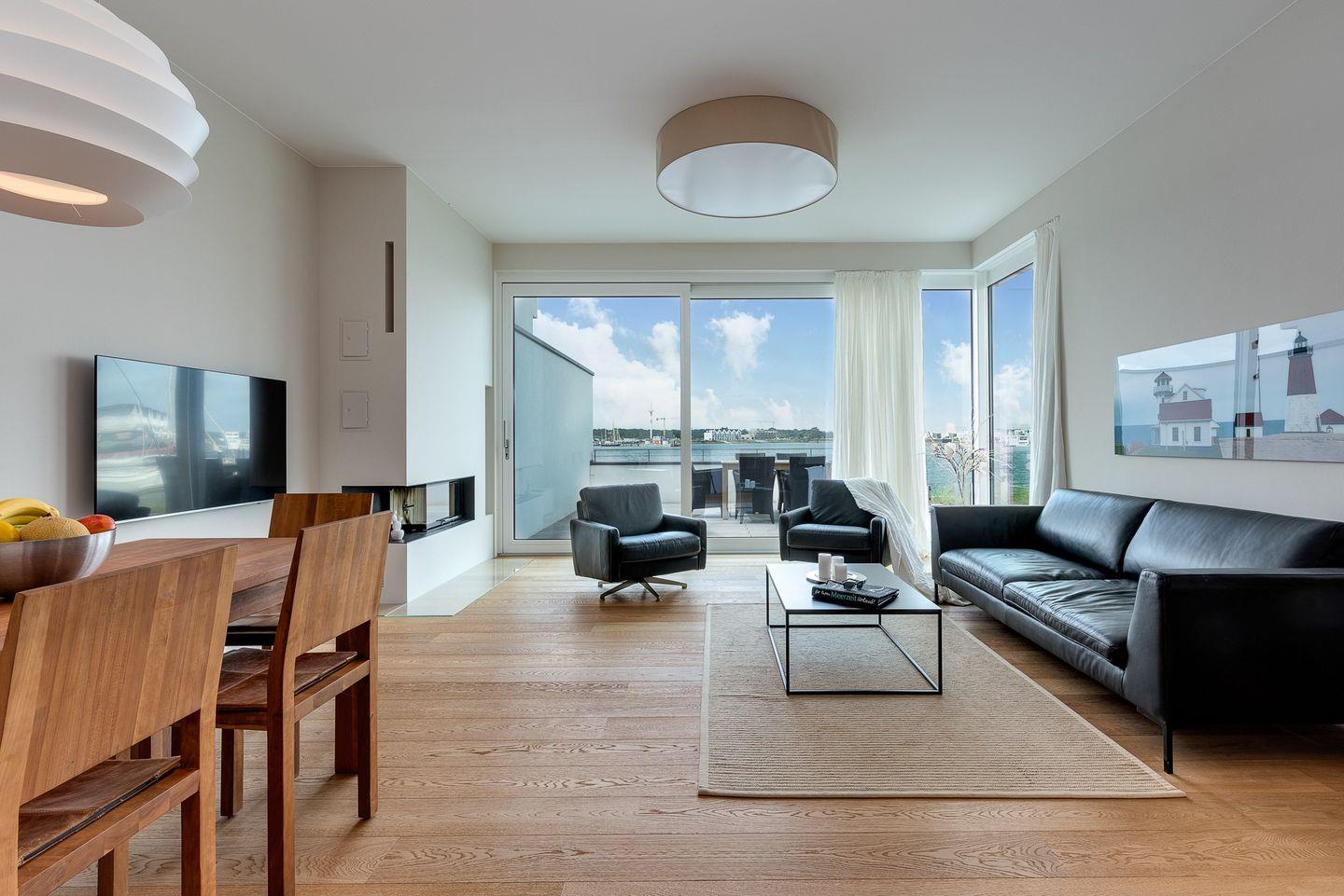 Luxusferienwohnung über 2 Ebenen direkt am Wasser in Strandnähe mit Terrasse, Balkon, finnischer Sauna und Kaminofen.