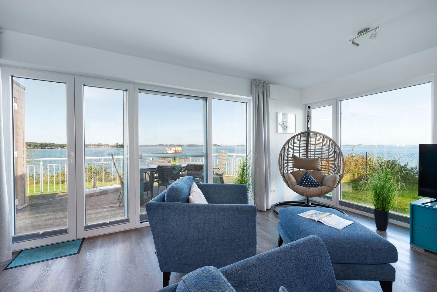 Auf vier Ebenen finden im großzügigen Ferienhaus "Ostseewind" bis zu 6 Personen Platz für einen Traumurlaub zwischen Schlei und Ostsee. Natürlich sind Vierbeinige Familienmitglieder in diesem Haus genauso willkommen wie Ihre Besitzer. Auf jeder Wohnebene befindet sich ein Außenbereich in Form einer angrenzenden Terrasse mit phänomenalem Wasserblick. Gemeinsames Grillen auf Wasserebene, romantischer Sonnenuntergang auf der Dachterrasse mit 360 Grad Wasserblick, Sonnenbaden oder chillen auf dem luxuriösen Lounge Daybed.