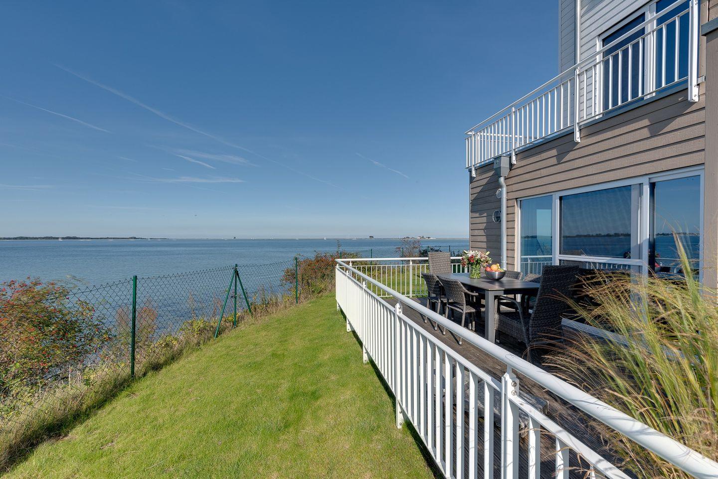 Luxusferienhaus direkt am Wasser mit Kamin, Badewanne, finnischer Sauna und Dachterrasse in traumhafter Lage mit 360° Meerblick.