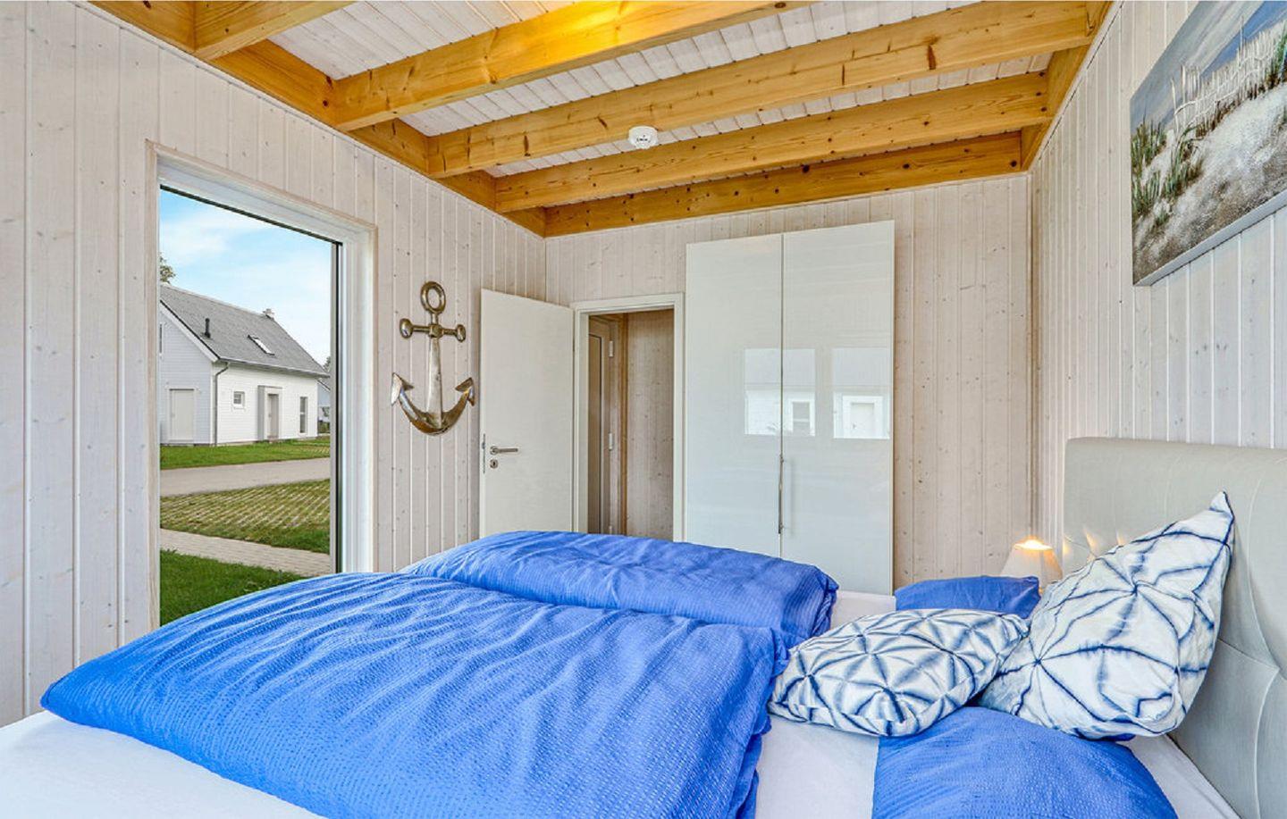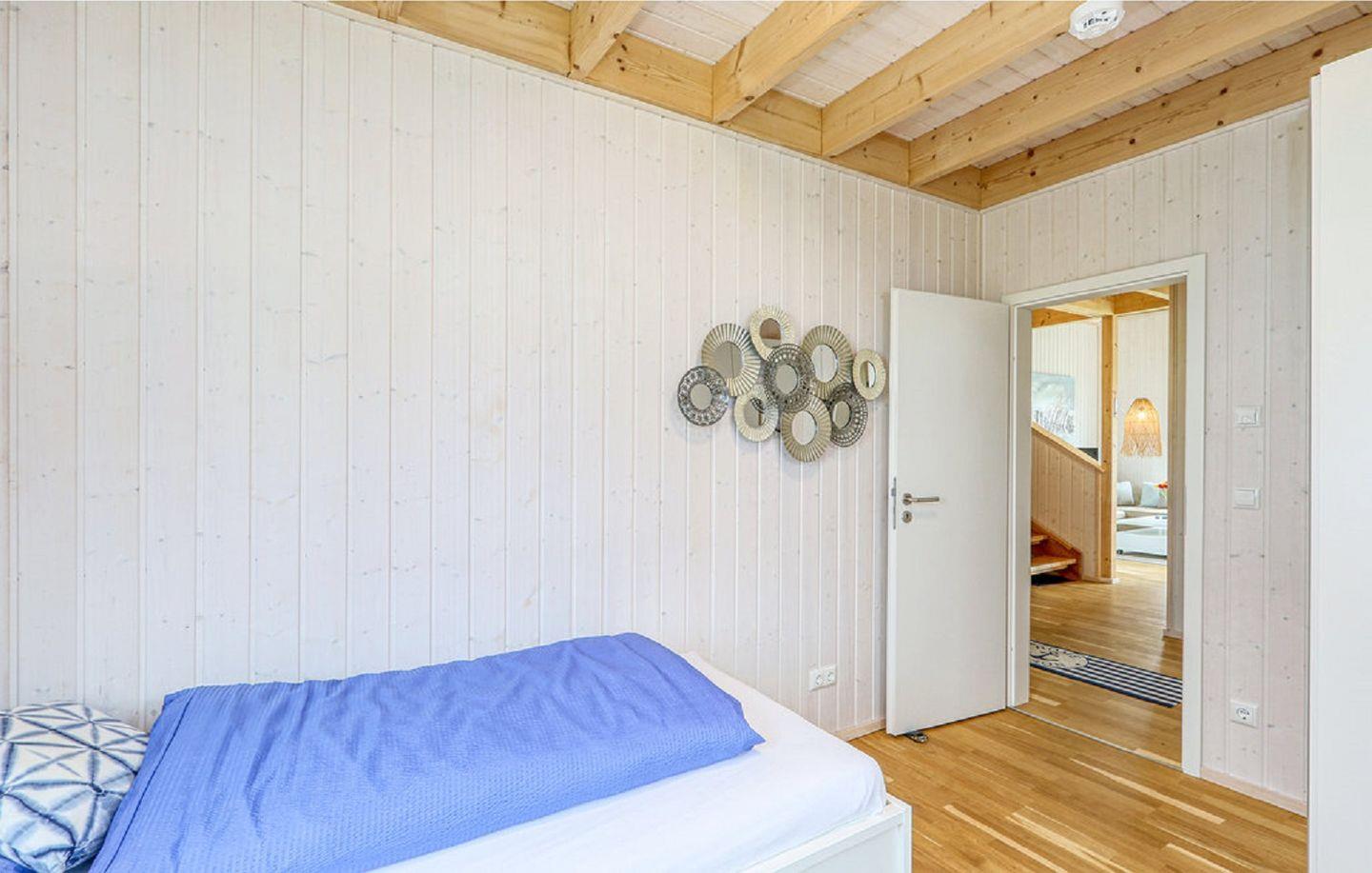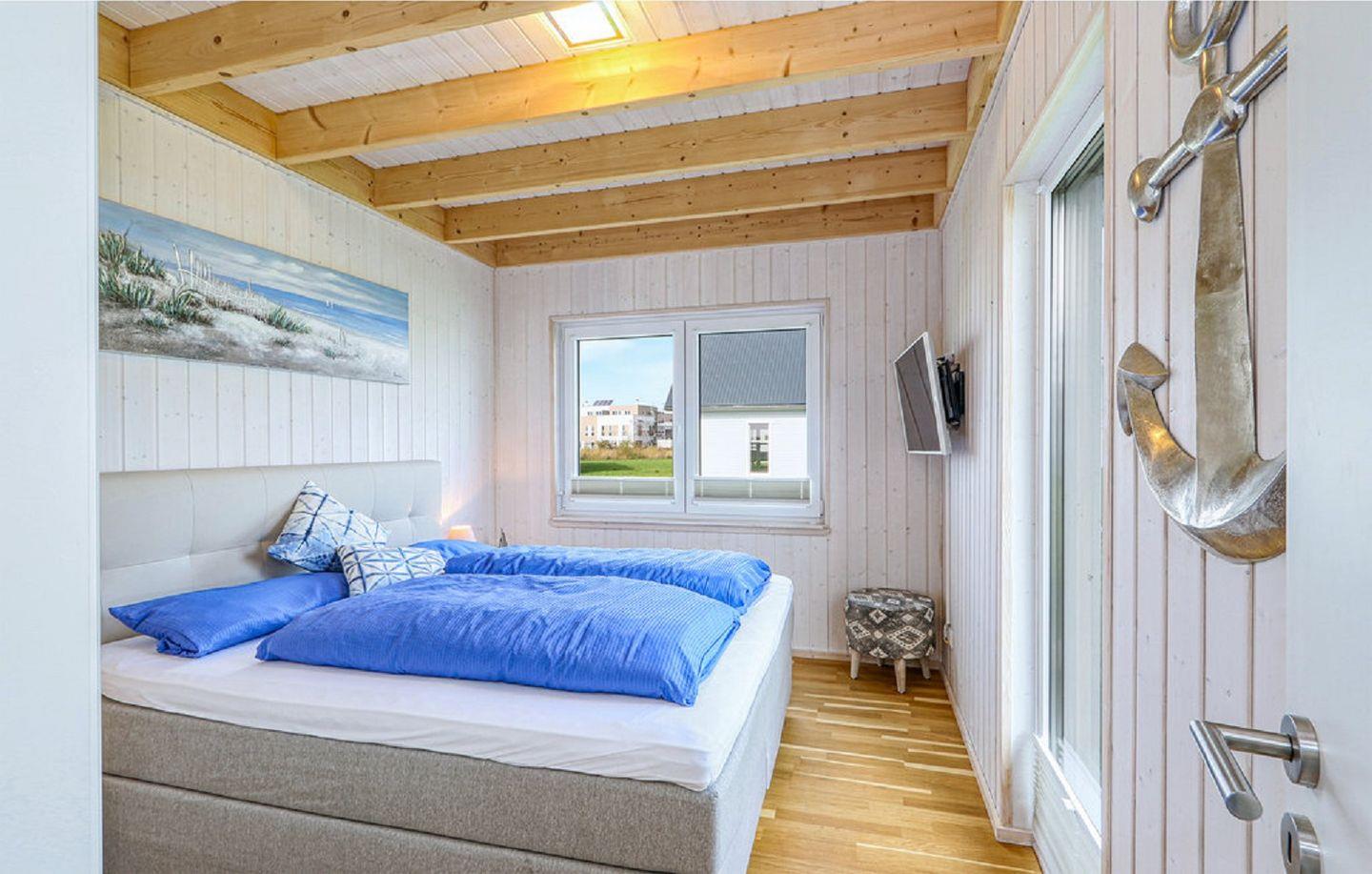 Ein weiteres Schlafzimmer mit großem Boxspring-Doppelbett (180 x 200 cm), Kommode und Flachbild-TV ist ebenfalls im Obergeschoss untergebracht.