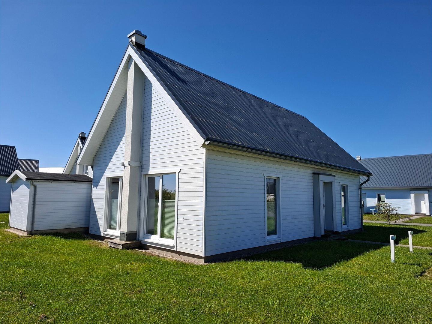 Das Haus verfügt über einen offenen Wohn- und Essbereich mit Kaminofen, eine Küchenzeile, drei Schlafzimmer und zwei Bäder. Die Küche ist voll ausgestattet. Auf der möblierten Terrasse kannst Du gemütliche Grillabende verbringen. Zwei Schlafzimmer verfügen über je ein Doppelbett und das dritte Schlafzimmer über zwei Einzelbetten. Ein Bad ist mit einer Dusche ausgestattet, das Zweite mit einer Badewanne. Direkt vor dem Haus stehen Dir zwei PKW-Stellplätze zur Verfügung.