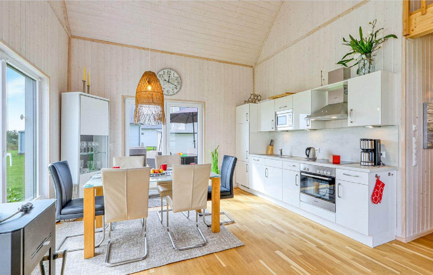 Nach langen Strandspaziergängen kannst Du auf dem gemütlichen Sofa vor dem Kamin entspannen und Deine Lieblingsserie auf dem Flachbild-TV schauen oder gemütlich ein Buch lesen. Die Küchenzeile bietet alles, was Du für einen geselligen Kochabend mit der Familie benötigst.