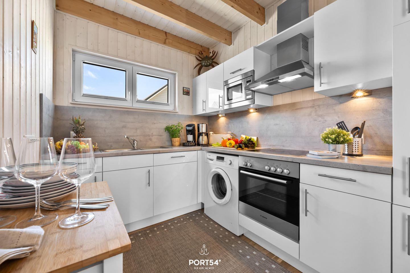 Die voll ausgestattete Küche lädt Dich zum kulinarischen Experimentieren ein. Neben Spülmaschine, Ceranfeld, Backofen und Mikrowelle stehen Dir alle nötigen Küchenutensilien zur Verfügung, um leckere Gerichte zu zaubern.