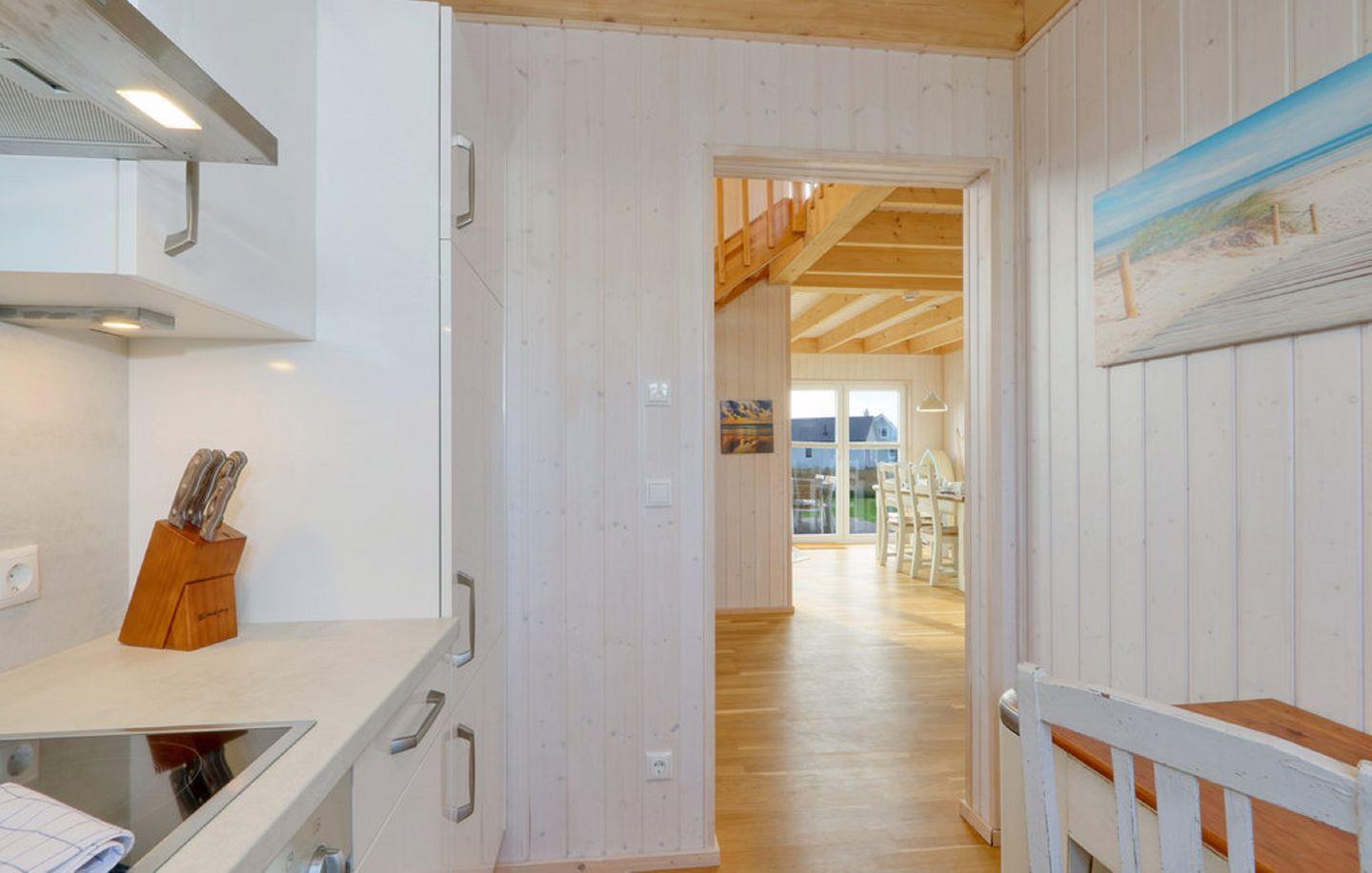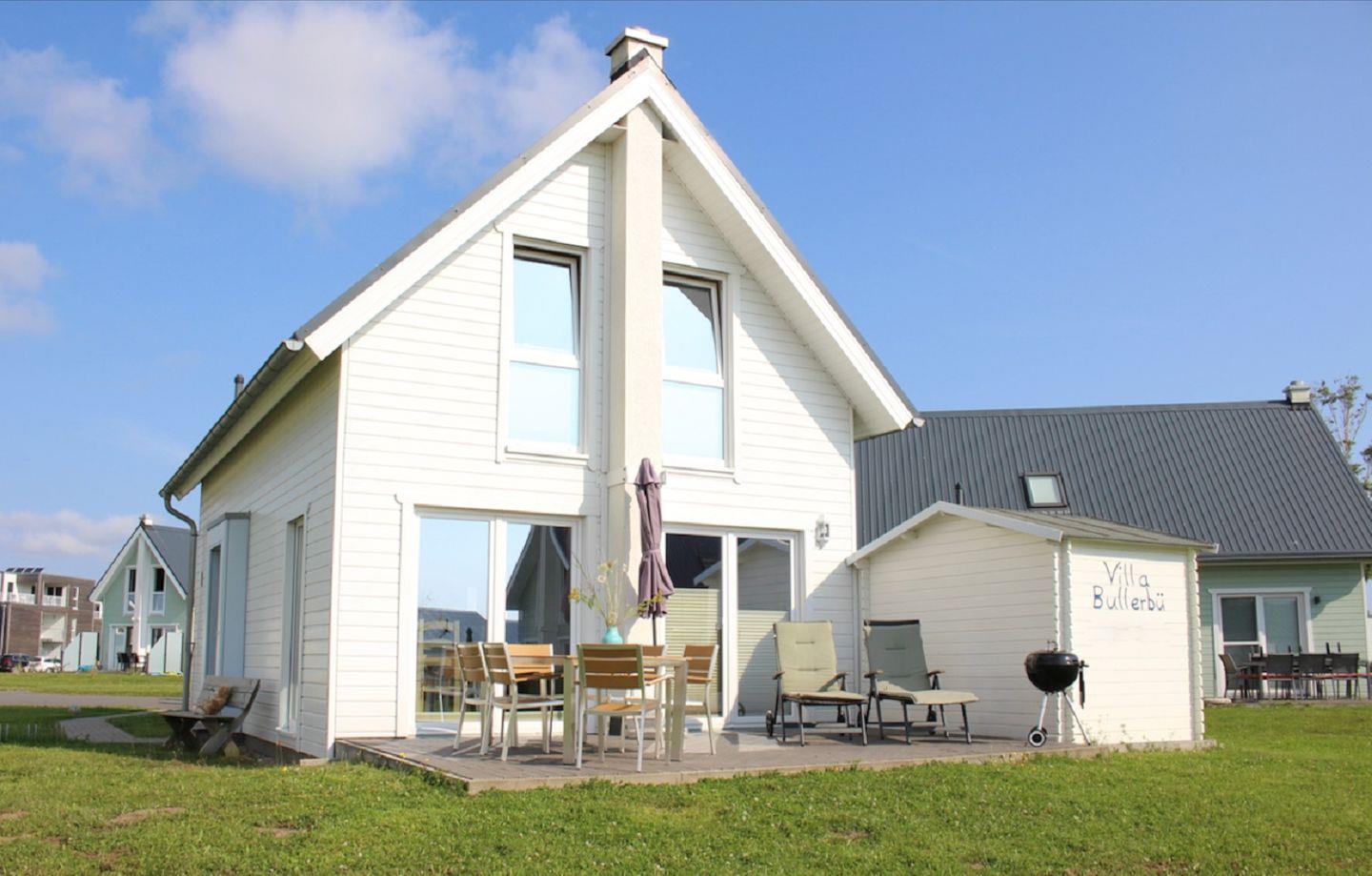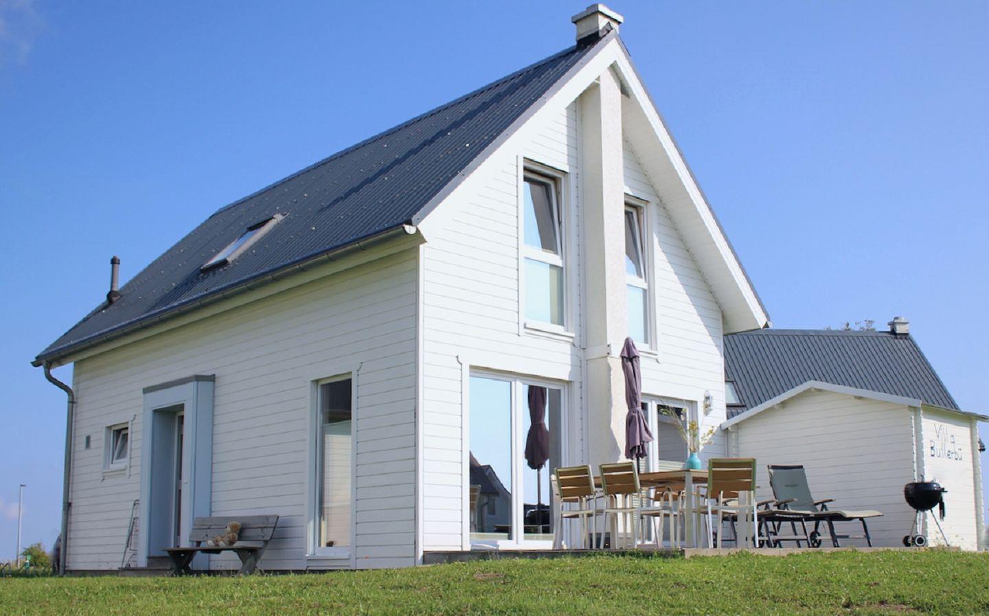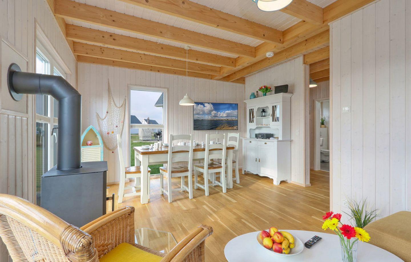 Die „Villa Bullerbü“ empfängt Dich mit einem freundlichen offenen Wohn- und Essbereich, einer voll ausgestatteten Küche, zwei behaglichen Schlafzimmern und zwei modernen Bädern. Nach einem langen Strandspaziergang lädt Dich das kuschelige Sofa vor dem knisternden Kamin zum gemütlichen Entspannen ein – vielleicht mit Deiner Lieblingsserie auf dem Flachbild-TV. Das Sofa lässt sich bei Bedarf in eine komfortable Schlafcouch verwandeln.