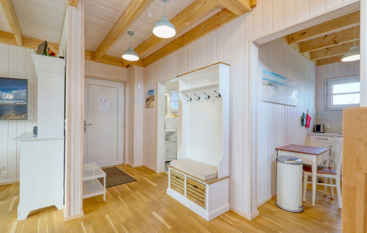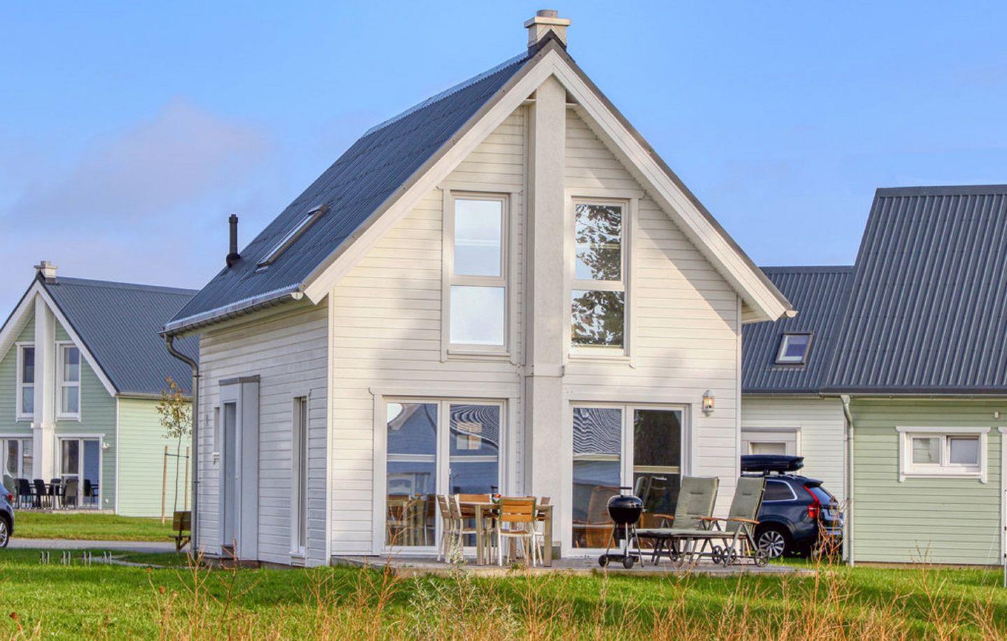 Das Haus verfügt über einen offenen Wohn- und Essbereich, eine Küche, zwei Schlafzimmer und zwei Bäder. Das Schlafsofa ist nur 1.60m breit für 2 Kinder. Die Küche ist voll ausgestattet. Die zwei Schlafzimmer bieten 1 Doppelbett und 2 Einzelbetten. Die Bäder verfügen über 1 Dusche und eine Badewanne mit Duschwand, sowie eine Infrarot-Sauna. Für Deine PKWs stehen Dir zwei Stellplätze vor dem Haus zur Verfügung.