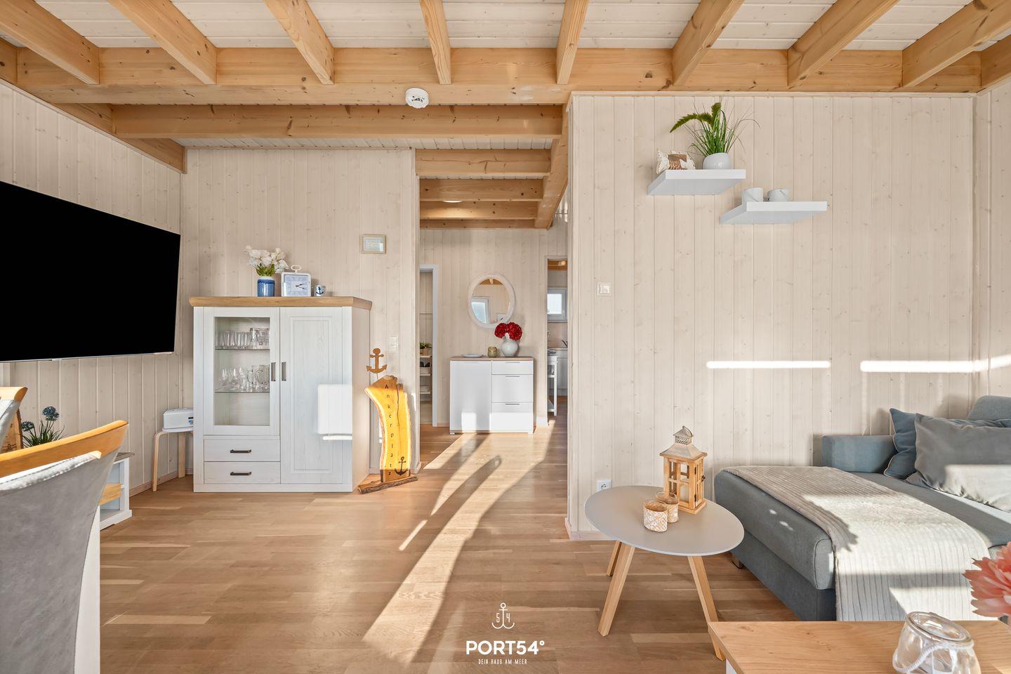 Nach langen Strandspaziergängen kannst Du auf dem gemütlichen Sofa vor dem Kamin entspannen und Deine Lieblingsserie auf dem Flachbild-TV schauen. Das Sofa kann zu einer Schlafcouch ausgezogen werden und eignet sich als Schlafmöglichkeit für ein Kind.