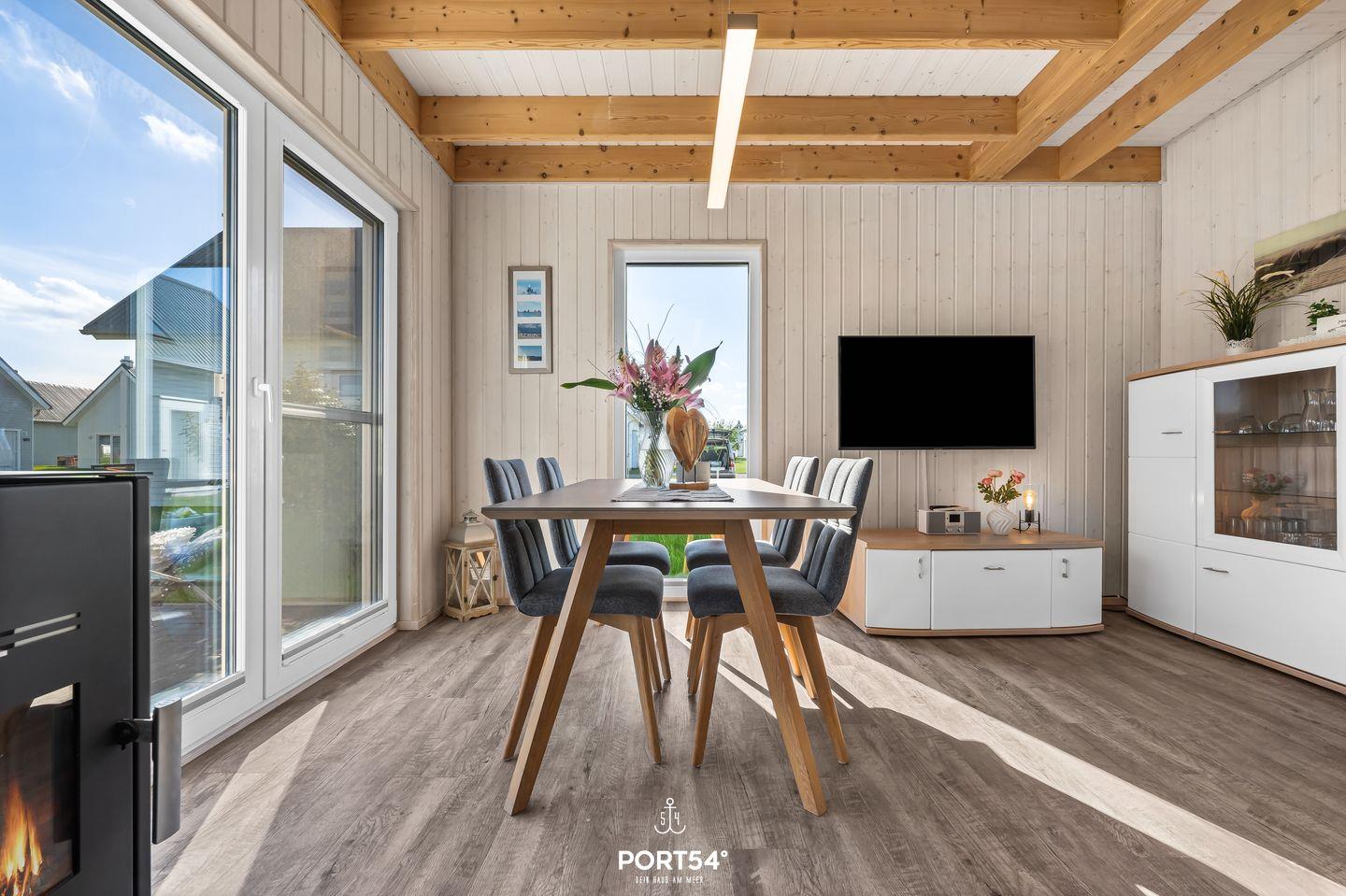 Dein freistehendes, 80 m² großes Feriendomizil verfügt über einen großzügigen Wohn- und Essbereich, zwei Schlafzimmer, zwei Bäder und eine Küche. Die großen Fenster sorgen für ein lichtdurchflutetes, großzügiges Wohngefühl.